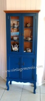 2746 - Armário com Cristaleira 02 portas Azul Bic Envelhecido com Castanho