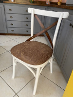 3395 - Cadeira X Estofada Branca Laqueada com "X" Castanho envelhecido