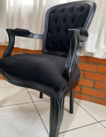 913 - Poltrona Luis Felipe Preta Laqueada com Encosto Estofado em Capitonê