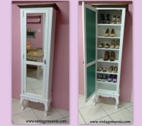 1619 - Sapateira Luis Felipe Alta com Espelho Branca Laqueada com Castanho Envelhecido