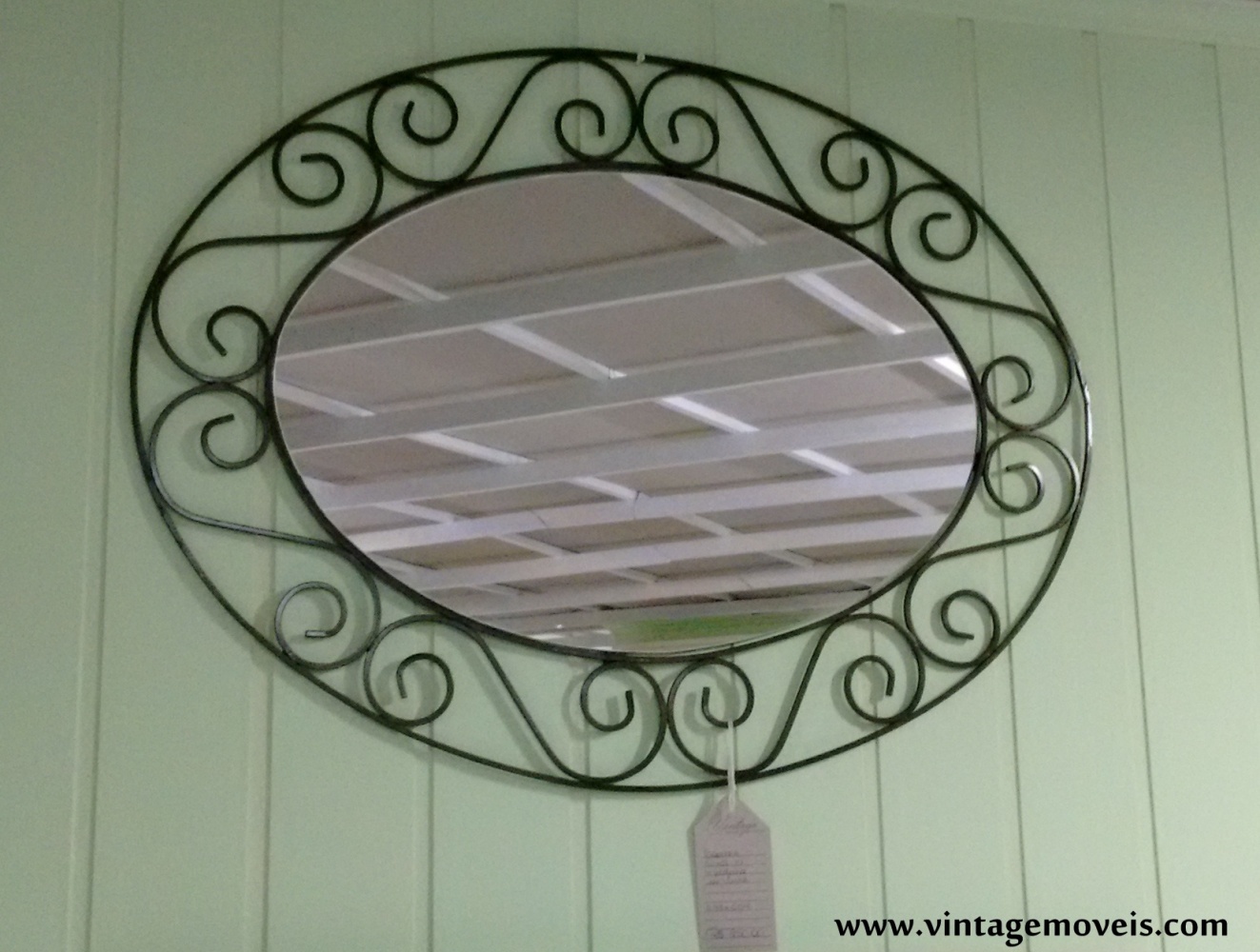 1413 - Espelho Oval com Moldura de Ferro cor Ouro Velho