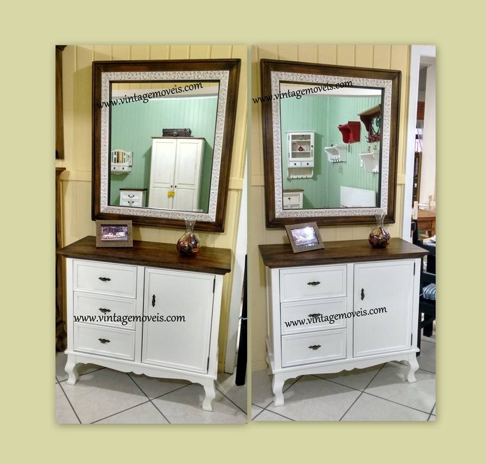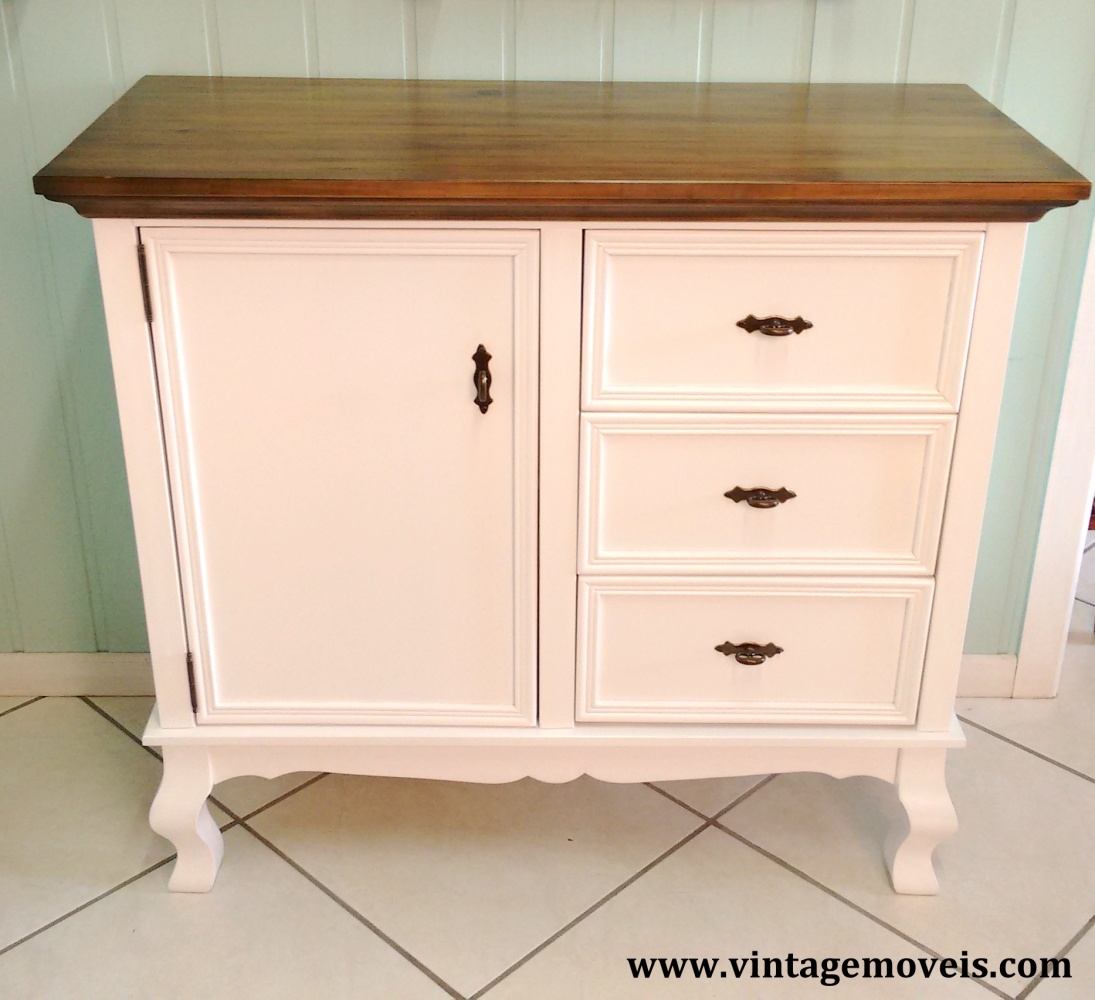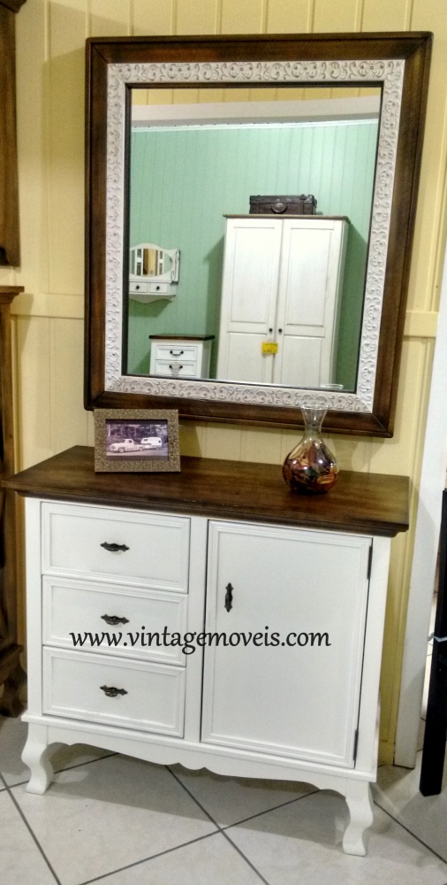 1479 - Cômoda Sapateira Luis Felipe Pequena Branca Laqueada com Tampo Castanho Envelhecido