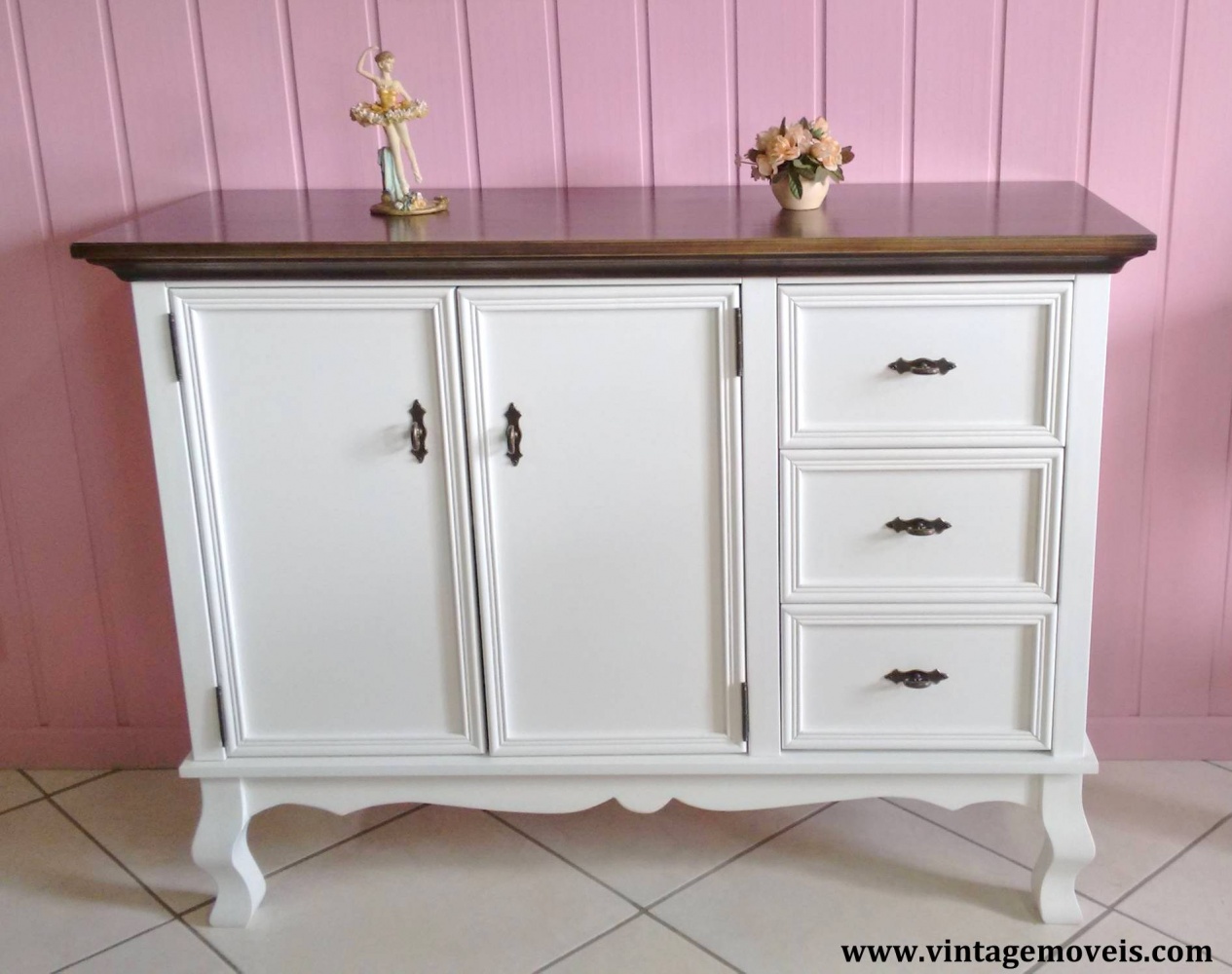 1484 - Cômoda Sapateira Luís Felipe Média Branco Laqueado com Tampo Castanho Envelhecido