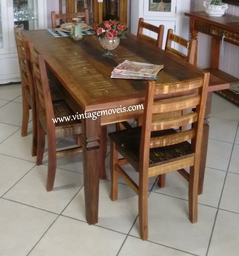 1604 - Conjunto de Mesa com 06 Cadeiras em Madeira de Demolição