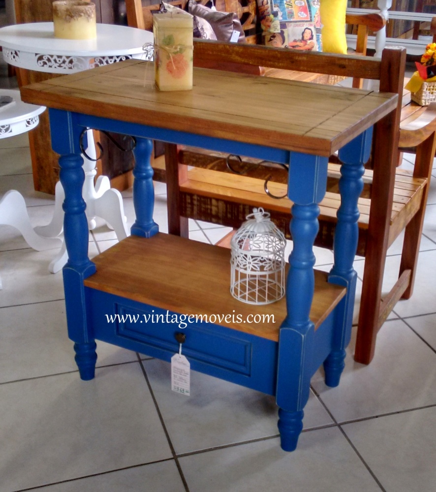 1695 - Aparador 04 Estações 01 Gaveta Azul Bic Envelhecido com Cêra
