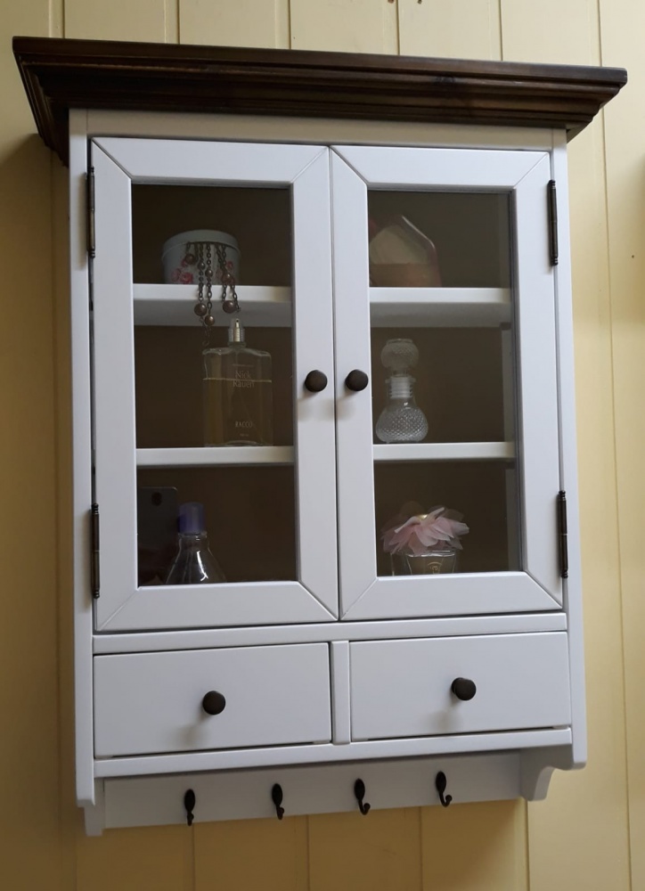 1733 - Armário Utilitário 02 Portas Branco Laqueado com Castanho Envelhecido