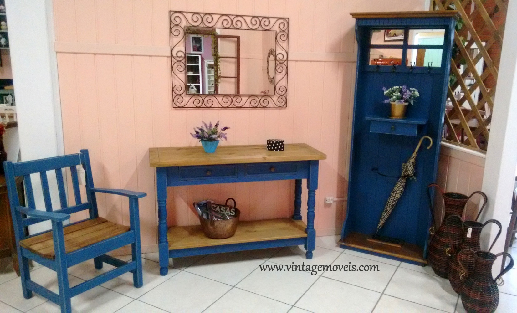 1766 - Chapeleira Azul Bic Envelhecido com Castanho