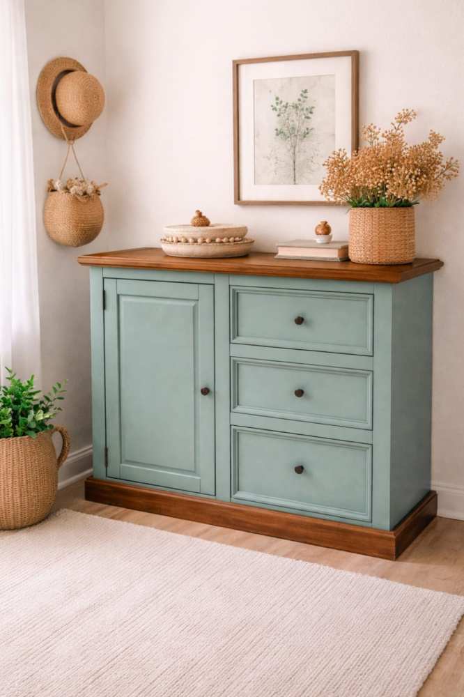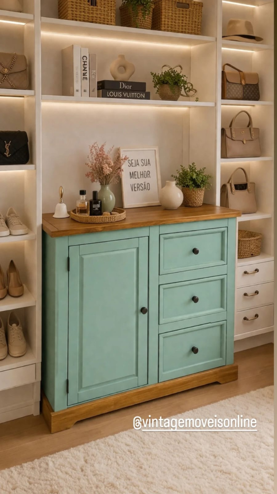 1958 - Cômoda Sapateira Rustica Verde Antigo Envelhecido com Cêra