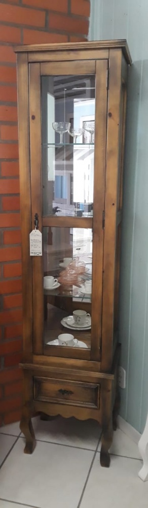2040 - Cristaleira Charlotte 01 porta Estreita Alta Castanho Envelhecido