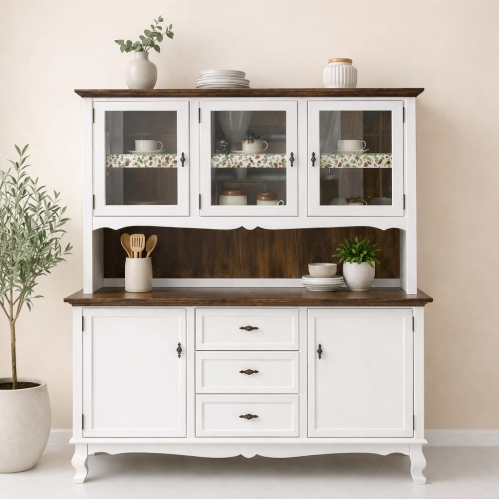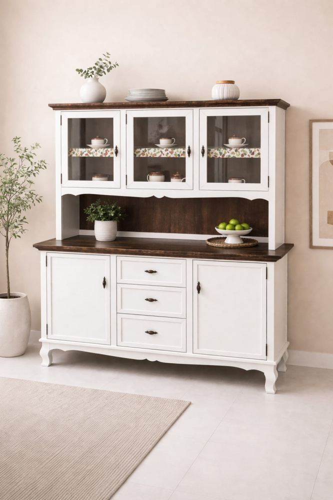 2048 - Arca com Oratório Luis Felipe 03 e 03 gavetas Portas Branco Laqueado com Castanho Envelhecido