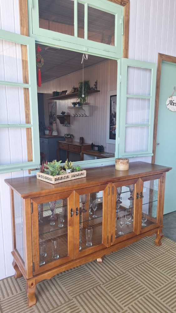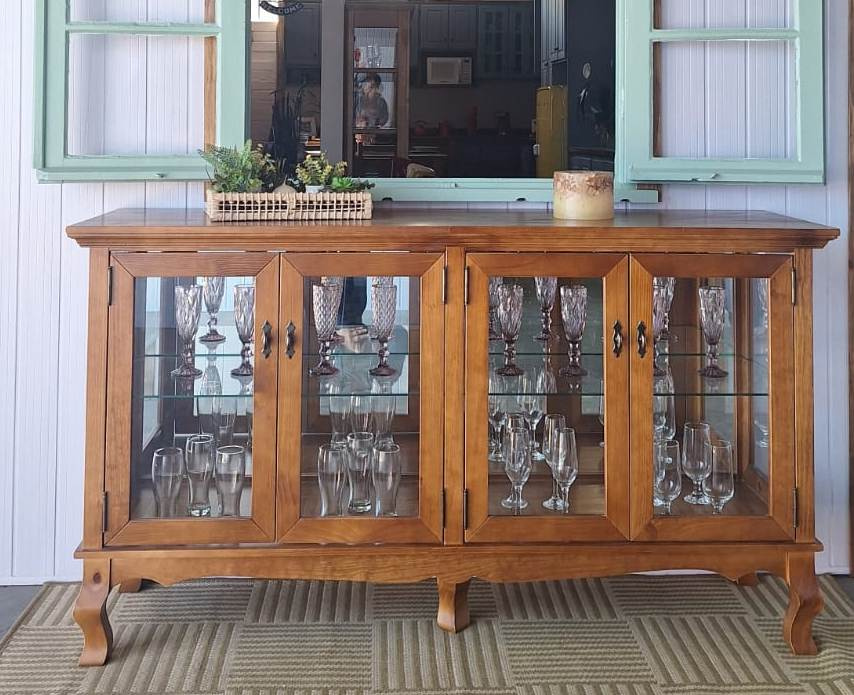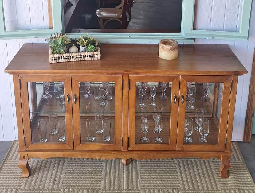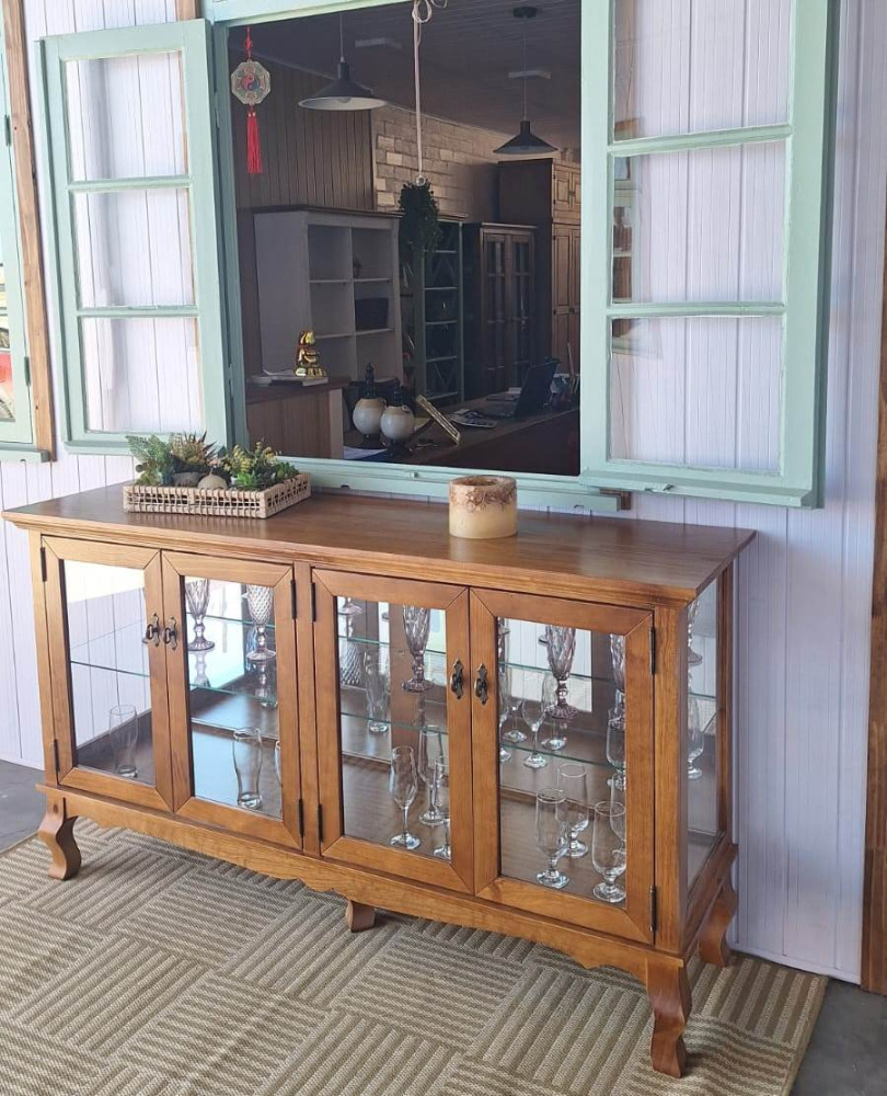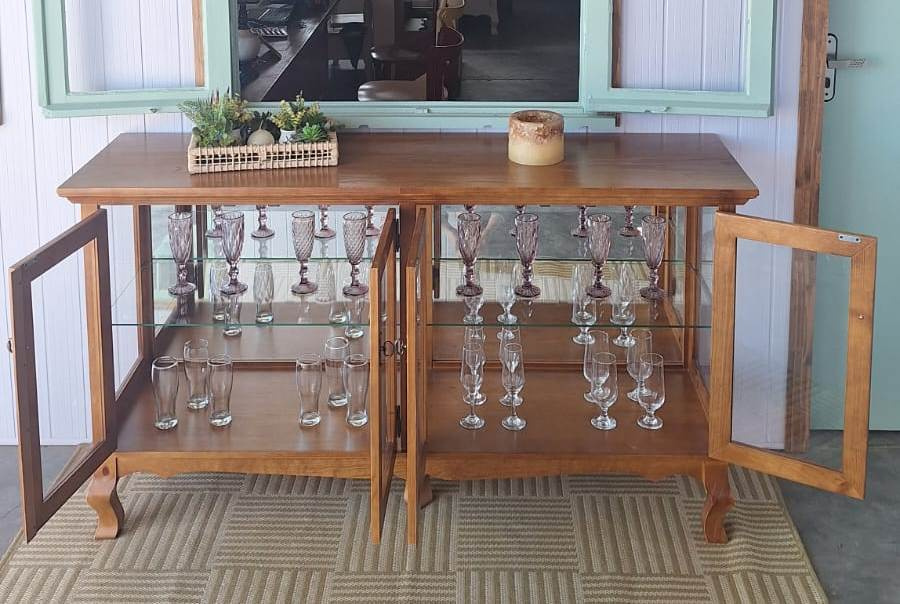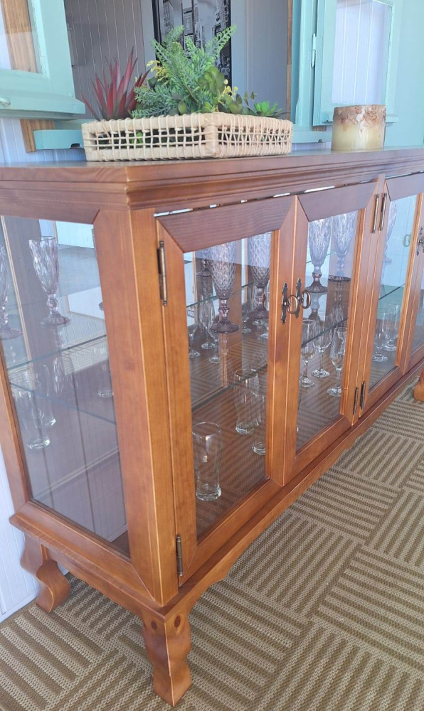 2072 - Cristaleira Horizontal Luis Felipe Castanho com espelho e prateleiras de vidro
