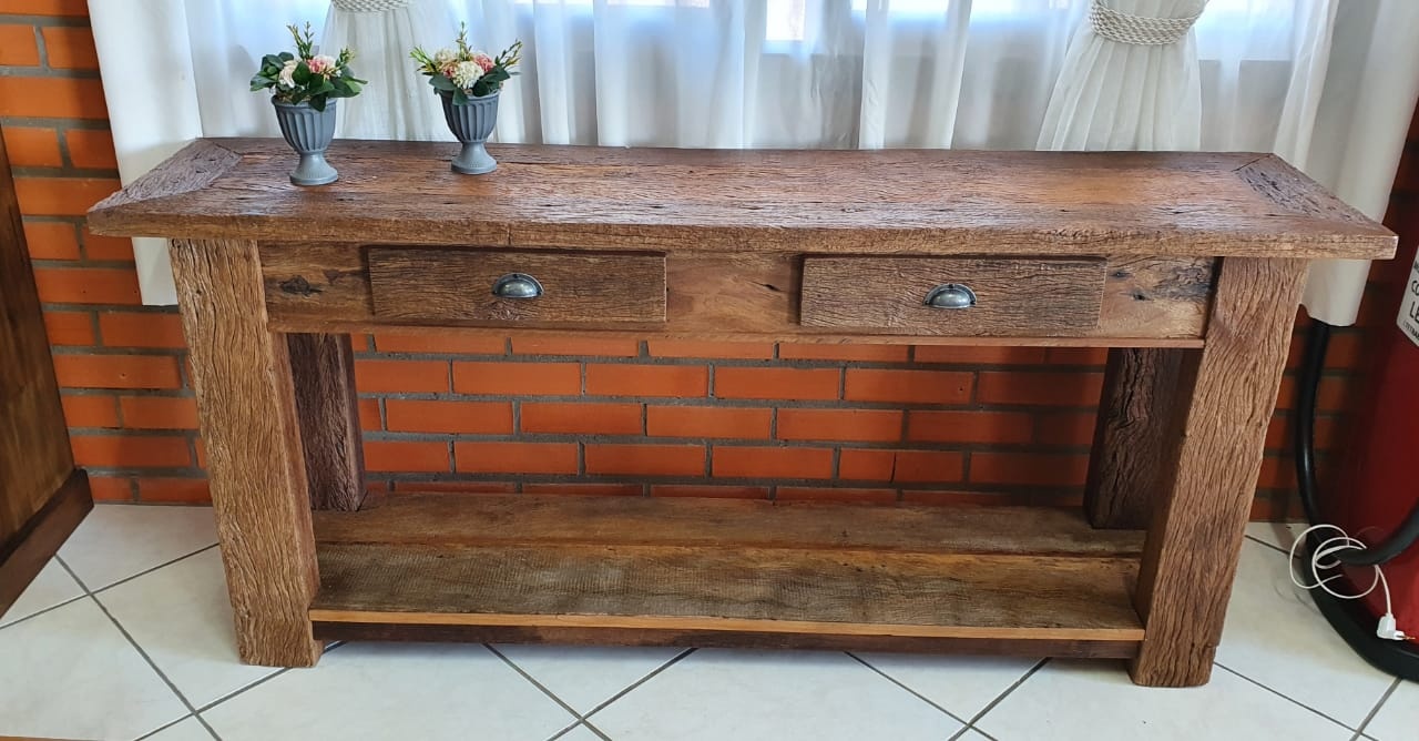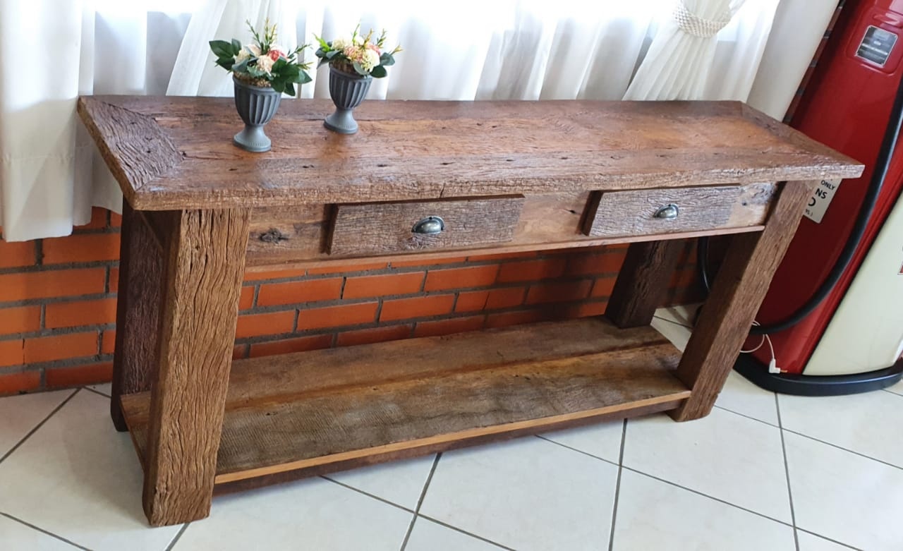 2125 - Aparador Grande em Madeira de Peroba Rústica com 02 gavetas