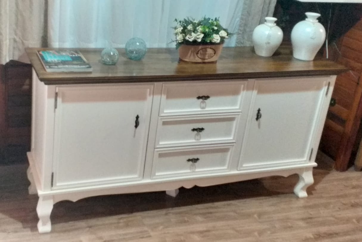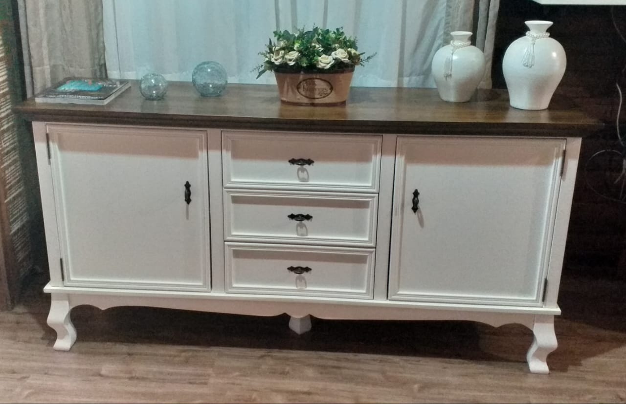 2146 - Balcão Luis Felipe Branco Laqueado com Castanho Envelhecido