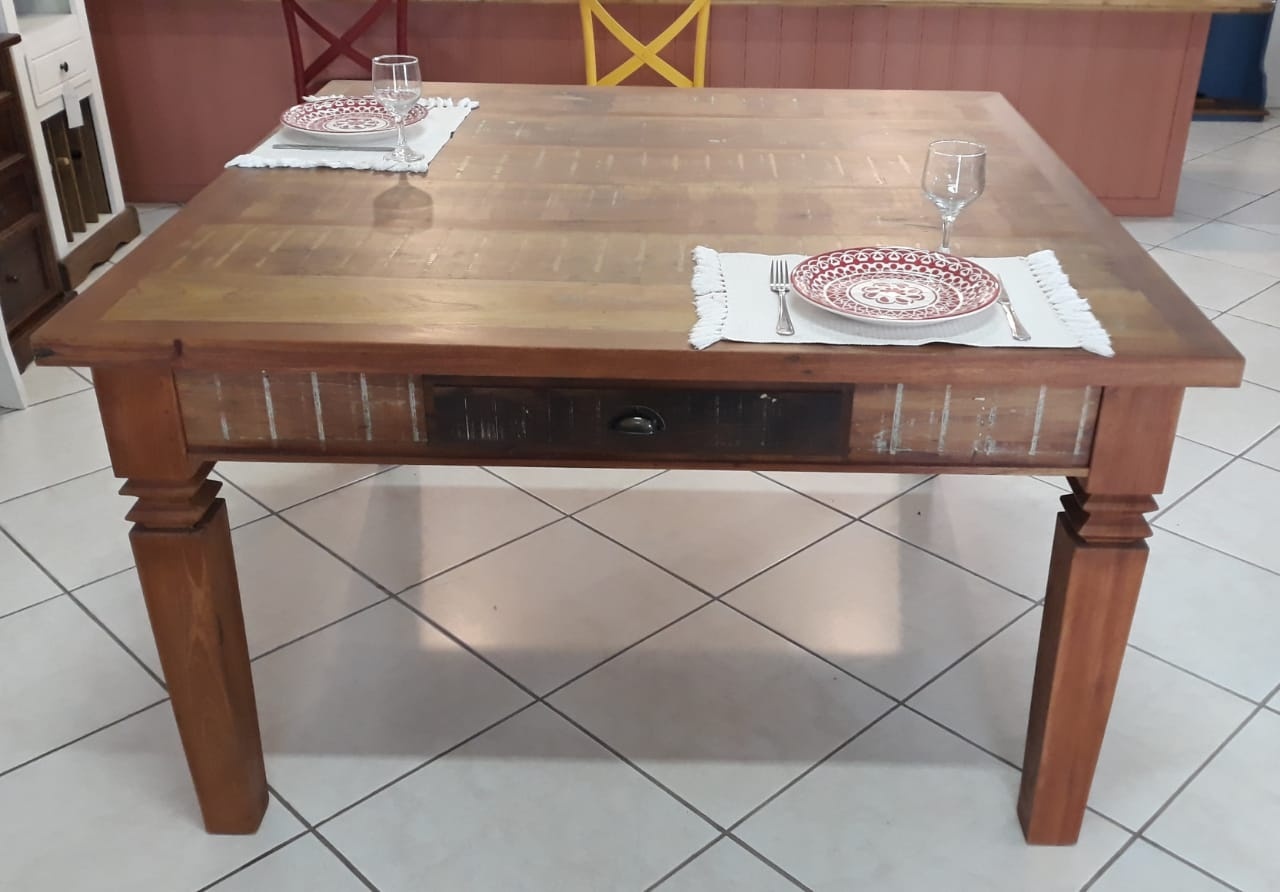 2244 - Mesa Quadrada em Madeira de Demolição com pés Diamante 08 Lugares