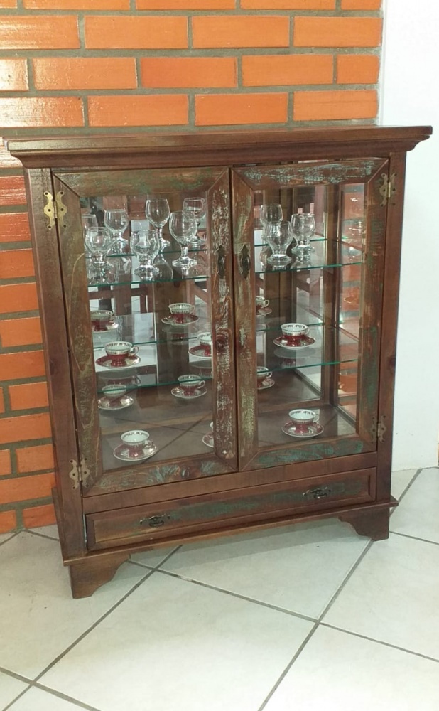 41 - Aéreo (portas com vidro) 03 Portas Verde Musgo envelhecido com Cêra
