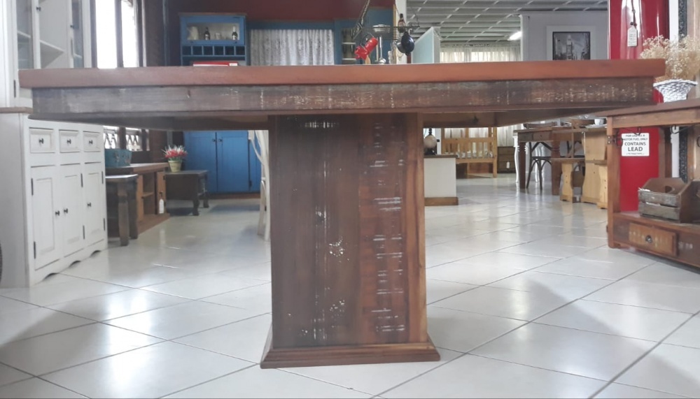 2308 - Mesa Quadrada em Madeira de Demolição com Pé Central