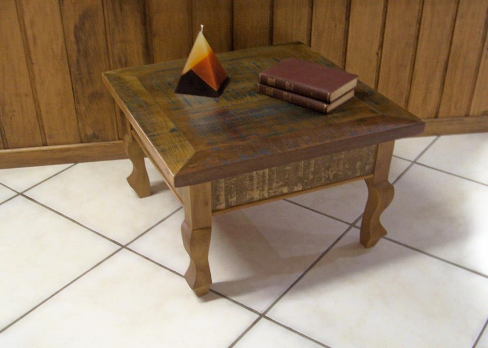 2352 - Mesa Lateral em Madeira de Demolição com Pés Luis XV