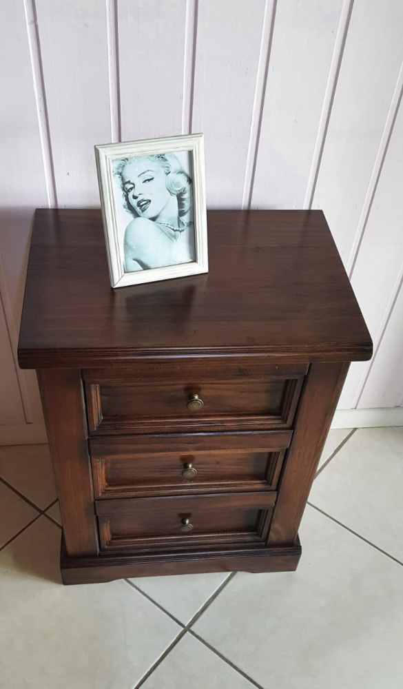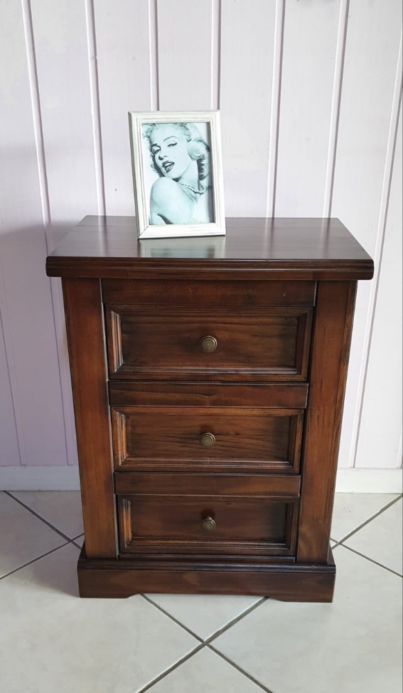 2369 - Mesa de Cabeceira 03 Gavetas Castanho Envelhecido