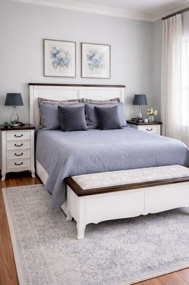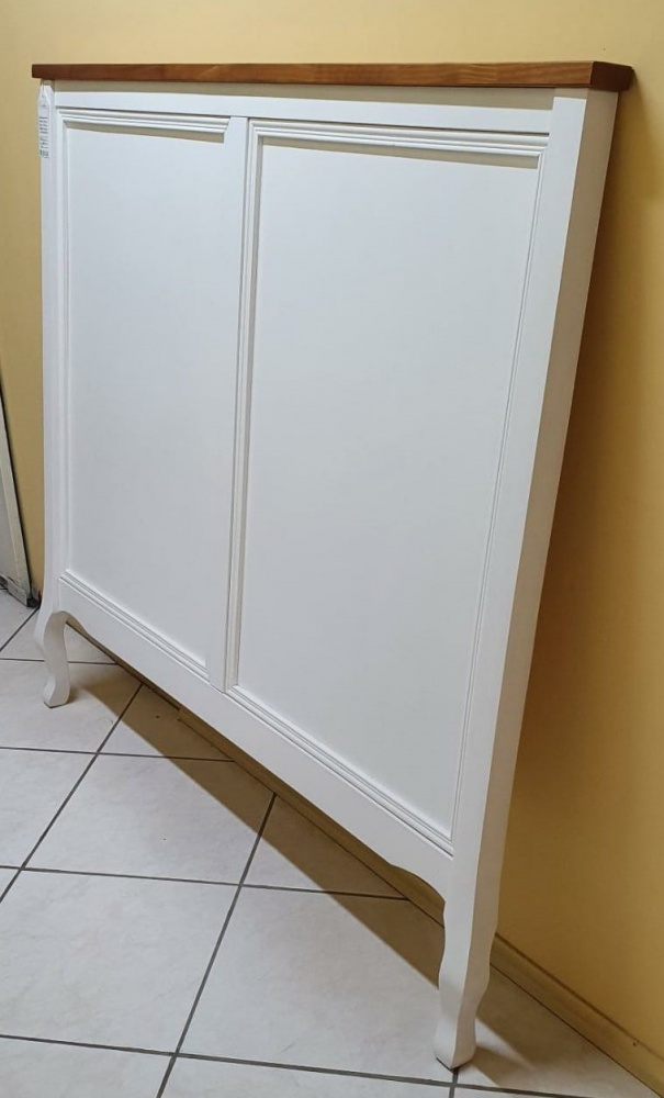 2377 - Cabeceira de Cama Queen com pés Luis Felipe Lisa Branca Laqueada com Castanho