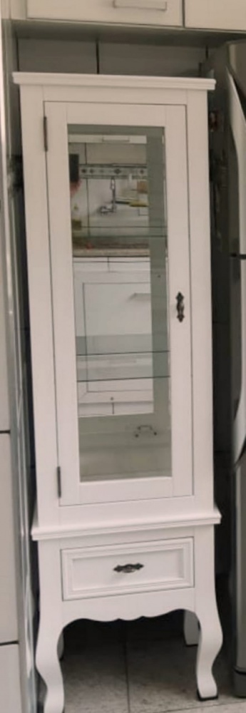2384 - Cristaleira Charlotte 01 porta Estreita Baixa Branca Laqueada