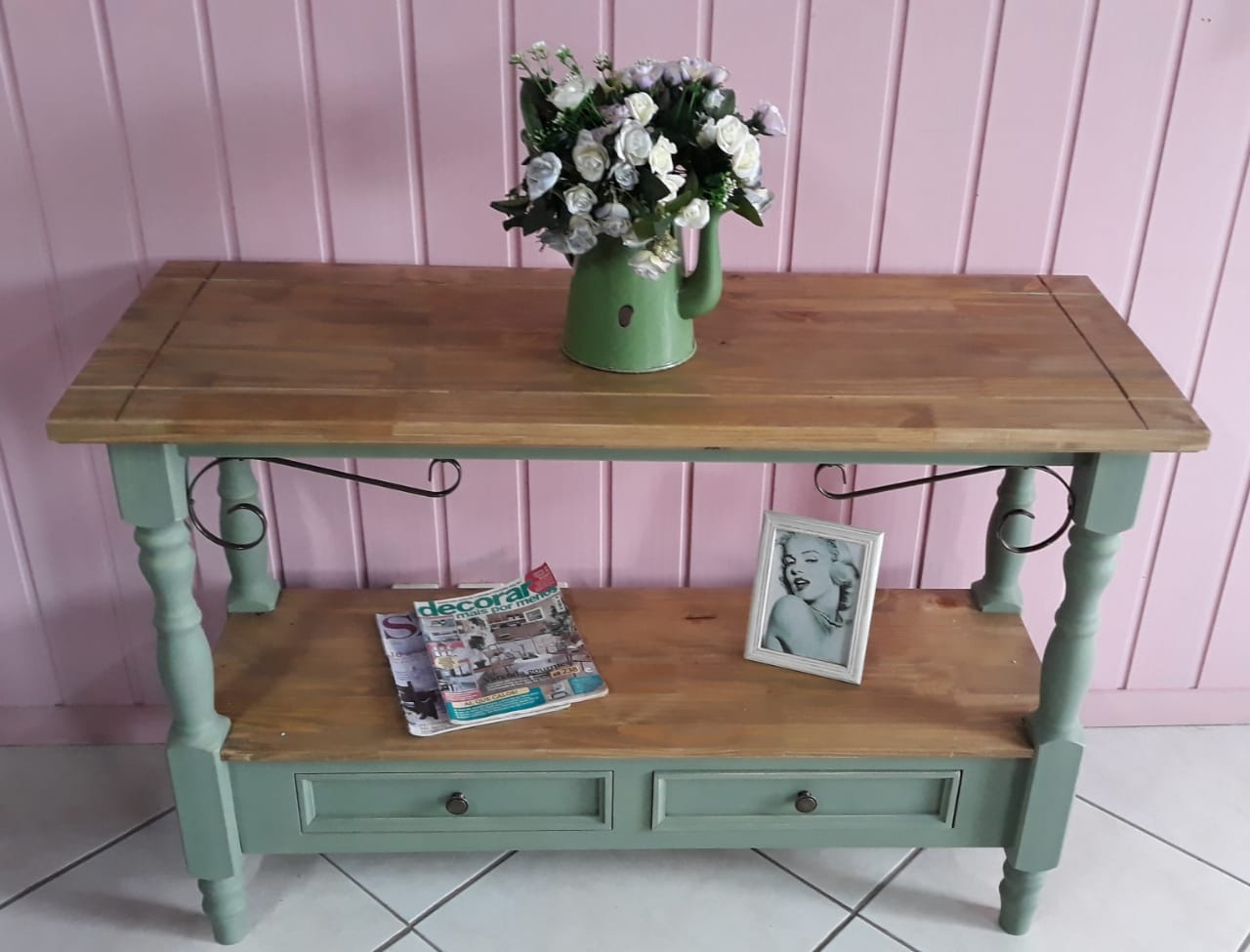 240 - Aparador 04 Estações 02 Gavetas Verde Musgo Envelhecido com Cêra