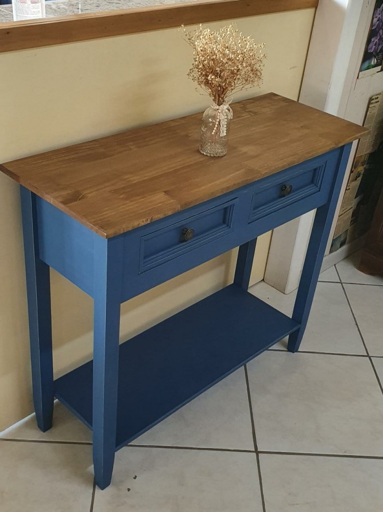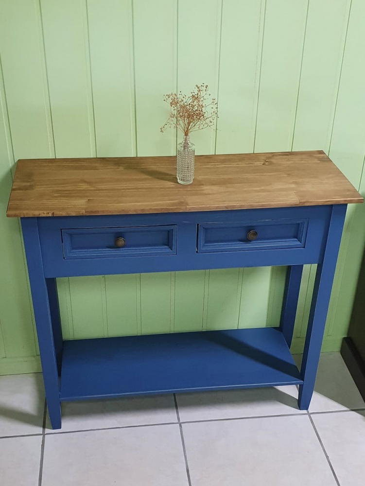 2448 - Aparador Reto 02 Gavetas Azul Bic com Cêra