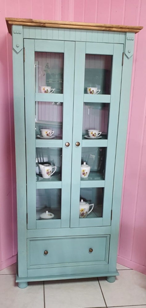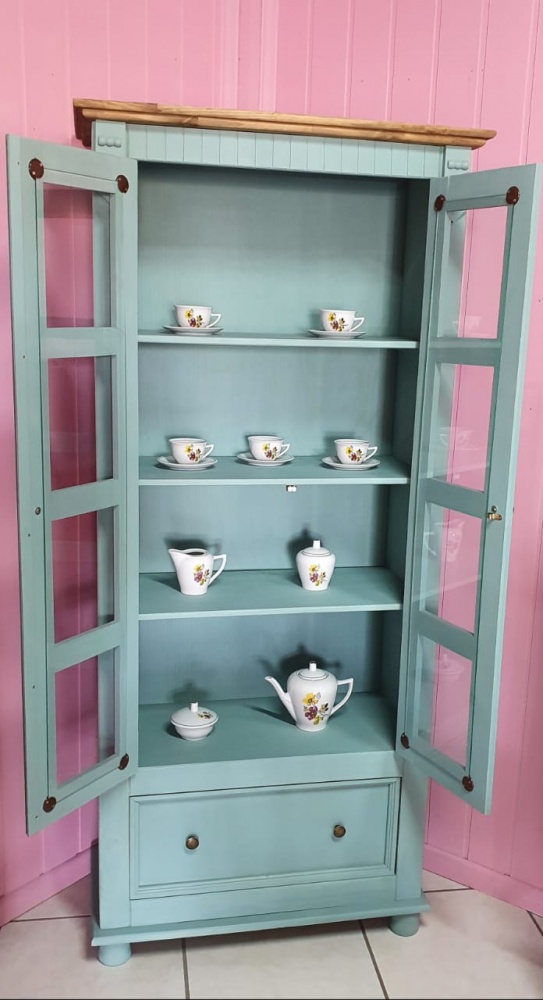 2454 - Cristaleira Bella Verde Antigo Envelhecido com Cêra