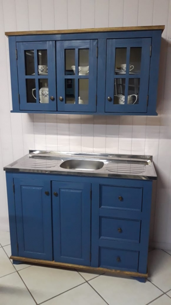 2515 - Balcão de pia (1,20L x 0,52P x 0,89) + Aéreo Azul Bic Envelhecido com Cêra (1,20L x 0,32P x 0,63A) - balcão sem tampo