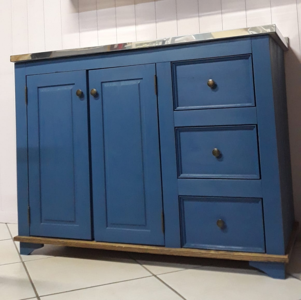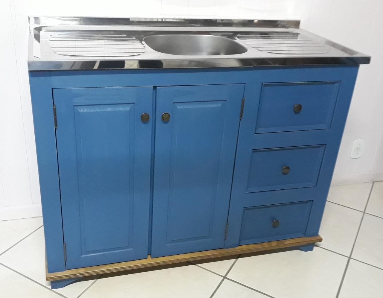 2516 - Balcão de Pia Azul Bic Envelhecido com Cêra - Sem tampo