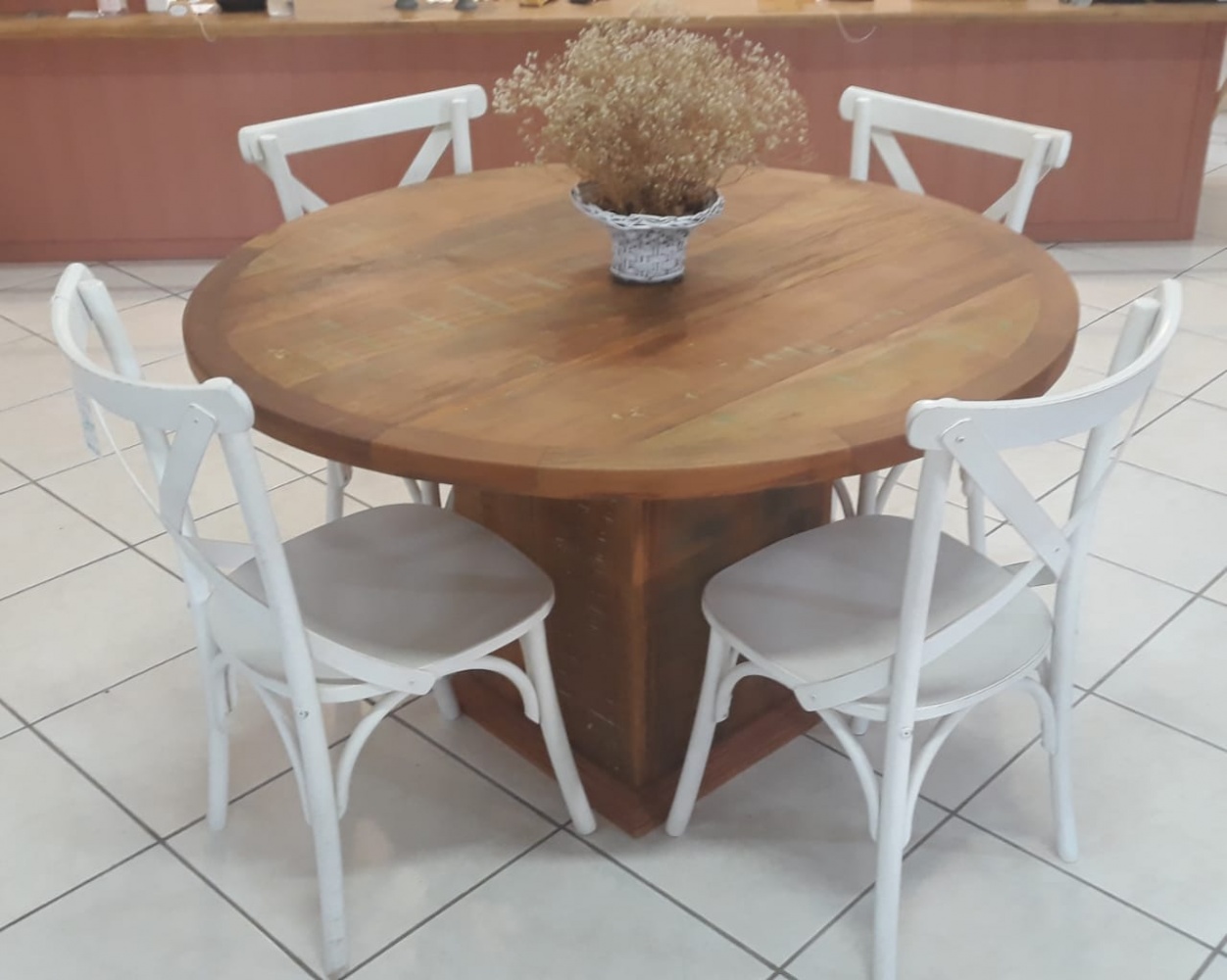 2539 - Conjunto de Mesa Redonda em Madeira de Demolição com 04 Cadeiras X Provençal