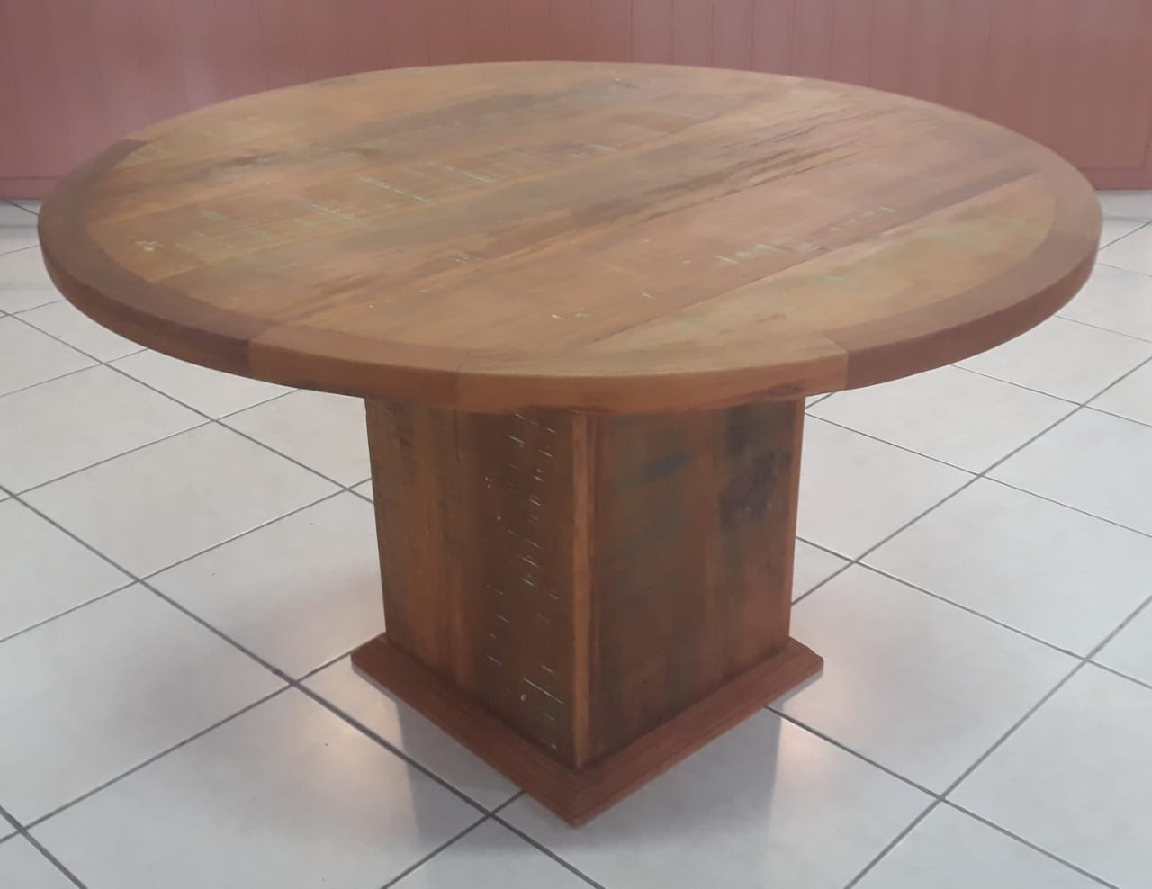 2543 - Mesa Redonda Avulsa em Madeira de Demolição