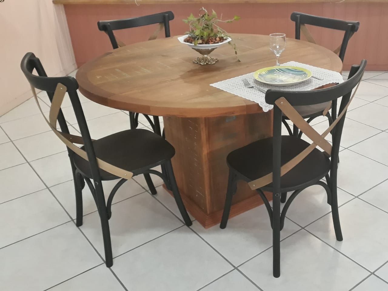 2552 - Conjunto de Mesa Redonda em Madeira de Demolição com 04 Cadeiras X Preto Envelhecido com Cêra