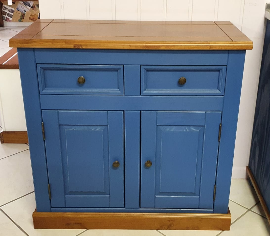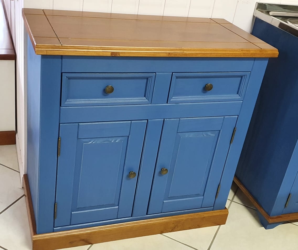 2747 - Balcão 02 Portas e 02 Gavetas Azul Bic Envelhecido com Castanho