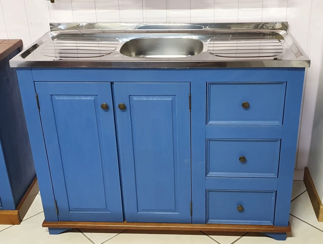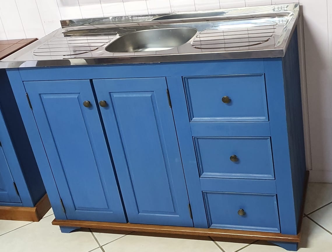 2748 - Balcão de Pia Azul Bic Envelhecido com Castanho - Sem tampo