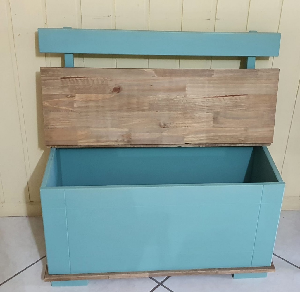 2765 - Banco Baú com Encosto Rústico Verde Envelhecido com Cêra