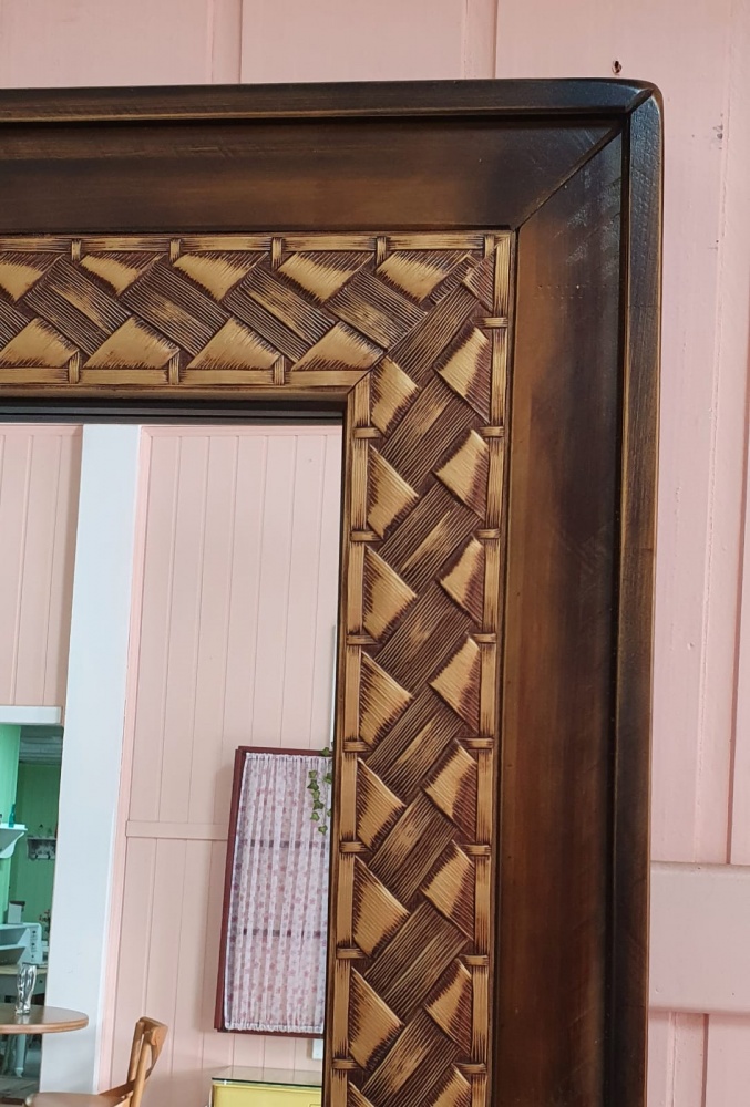 2986 - Espelho Grande com Moldura Decorada Castanho Envelhecido