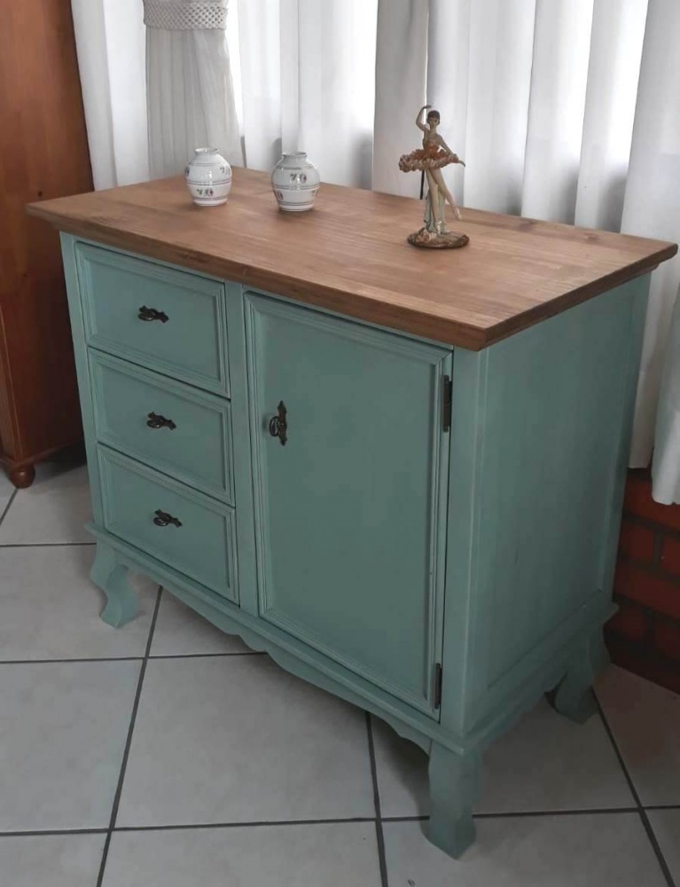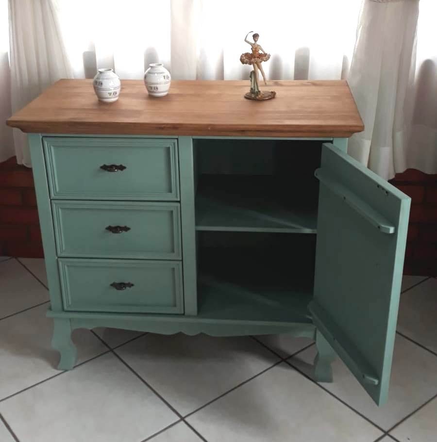 2992 - Cômoda Sapateira Luis Felipe Pequena Verde Antigo Envelhecido com Cêra
