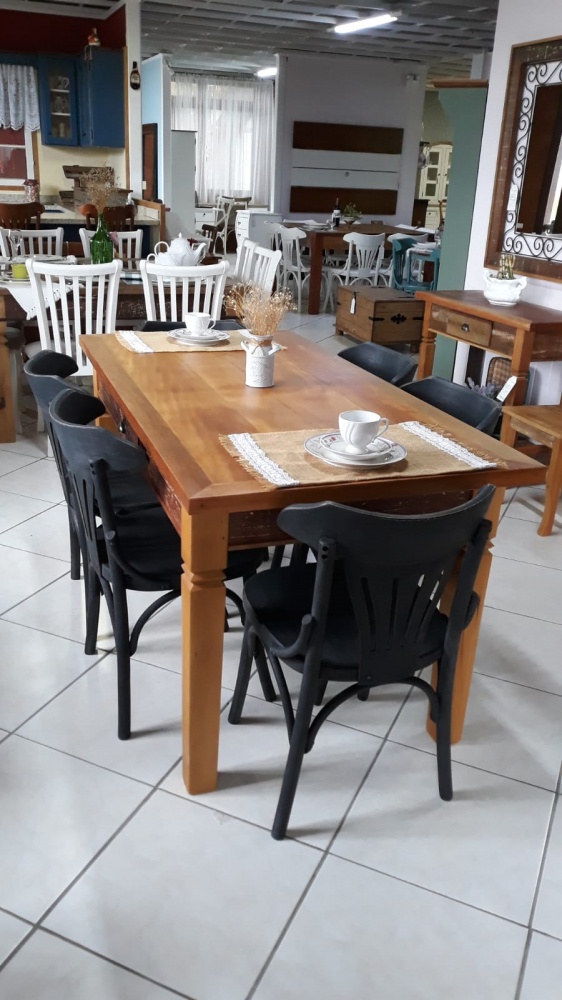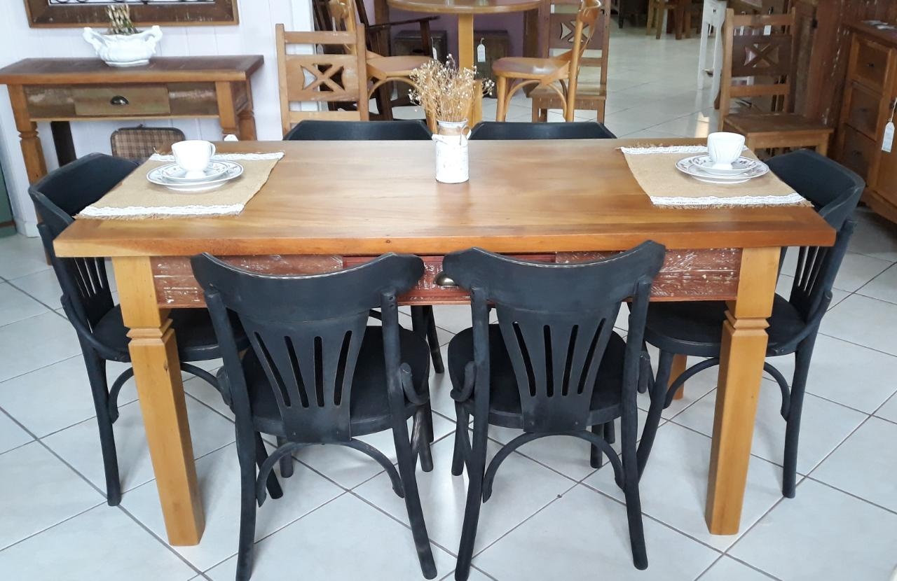 3029 - Conjunto de mesa em Madeira de Demolição com 06 cadeiras Berlim Pretas Envelhecidas