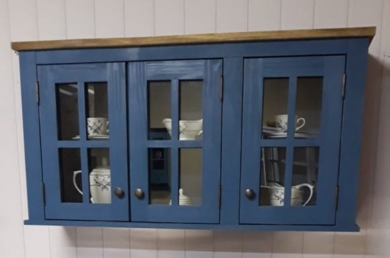 3067 - Aéreo (portas com vidro) 03 Portas Azul Bic Envelhecido com Cêra