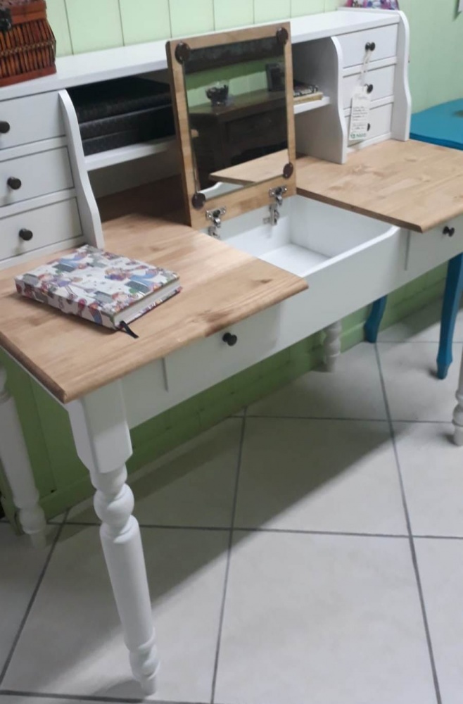 3080 - Mesa de Estudos com Nicho Branca Laqueada com tampo Cêra