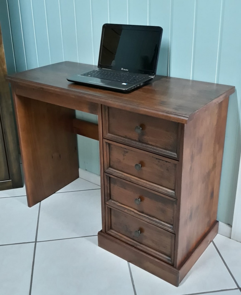 3084 - Escrivaninha 04 Gavetas Castanho Envelhecido