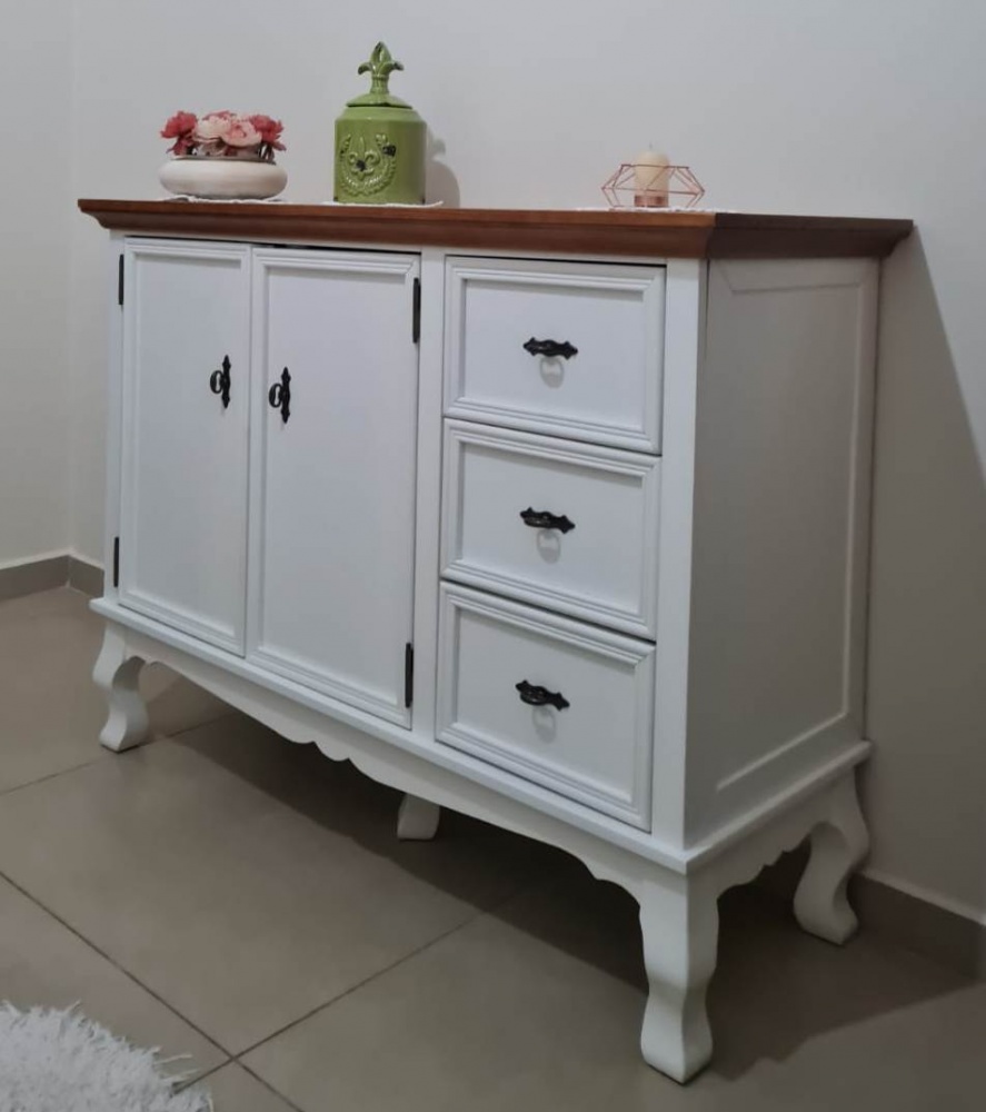 3092 - Cômoda Sapateira Luís Felipe Média Branco Laqueado com Tampo Castanho