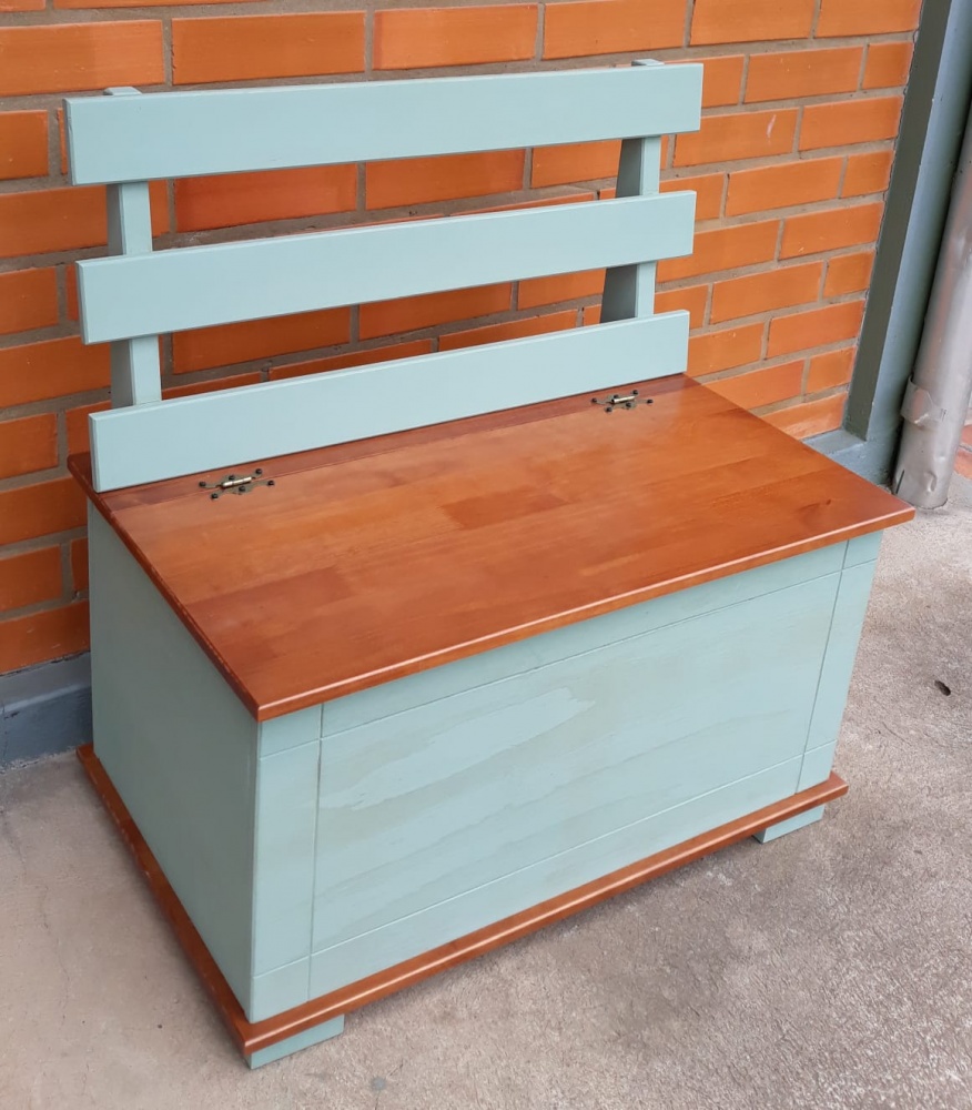 3094 - Banco Baú com Encosto Verde Antigo Envelhecido com acento Castanho