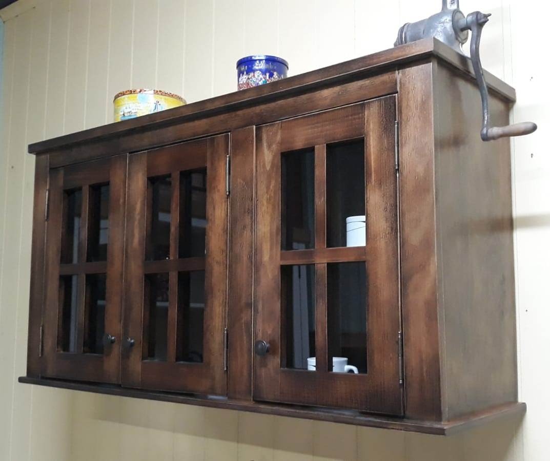 3116 - Aéreo 03 portas (portas com vidro) Castanho envelhecido