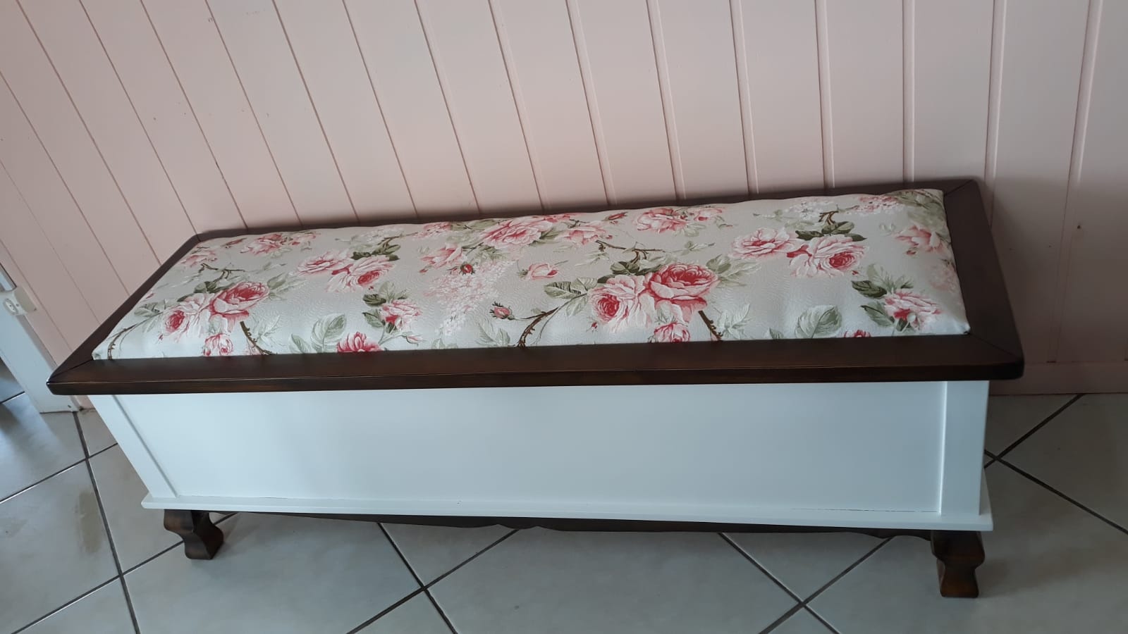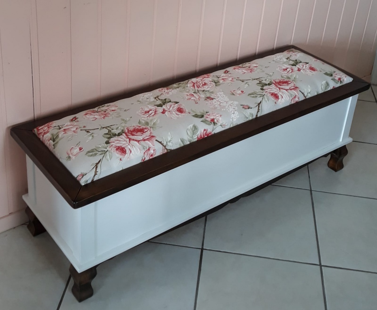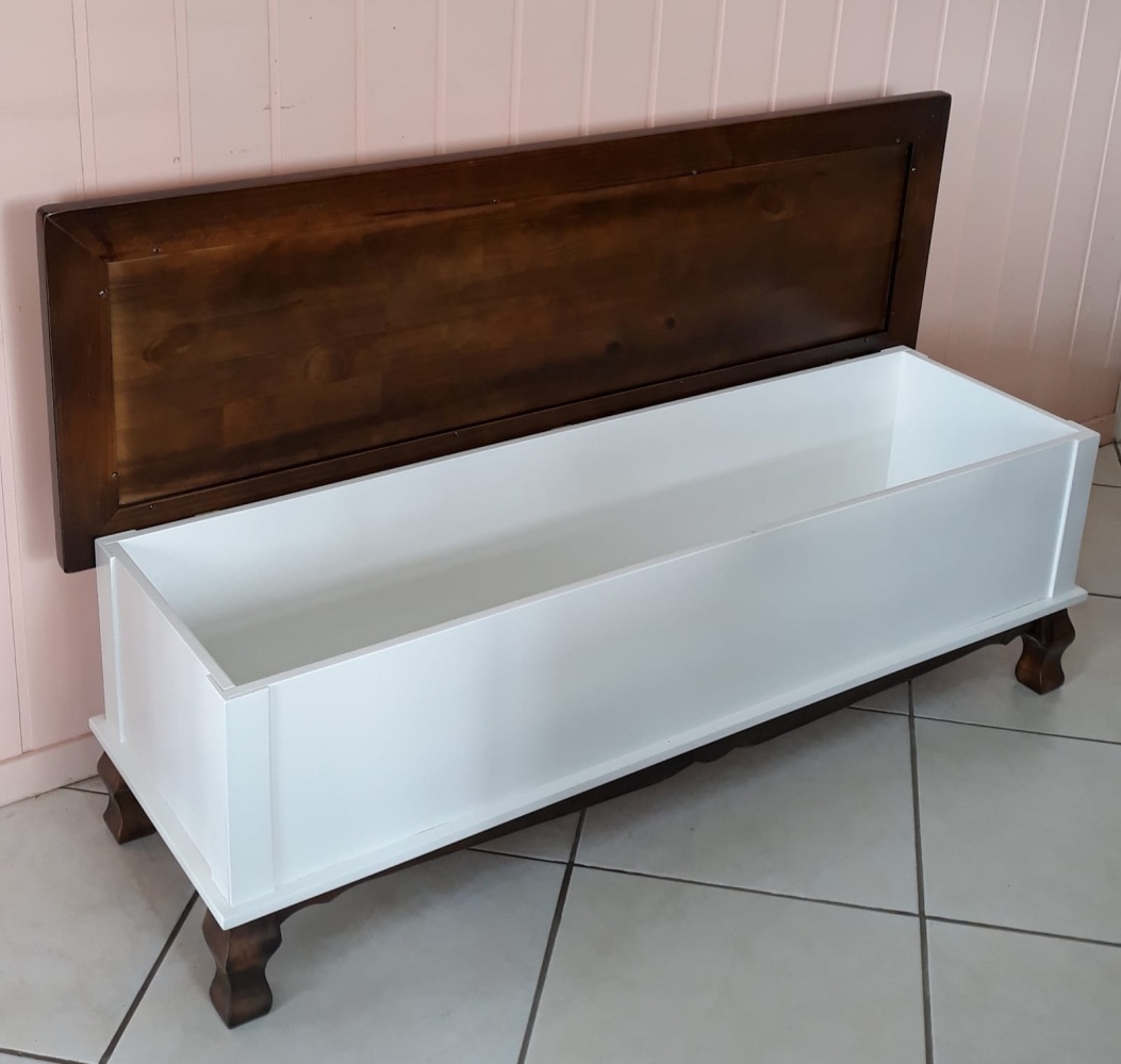 3117 - Arca Baú com pés Luis Felipe Branco Laqueado com Castanho Envelhecido