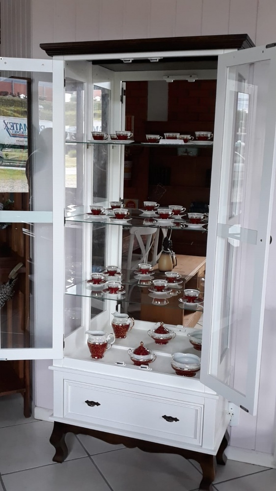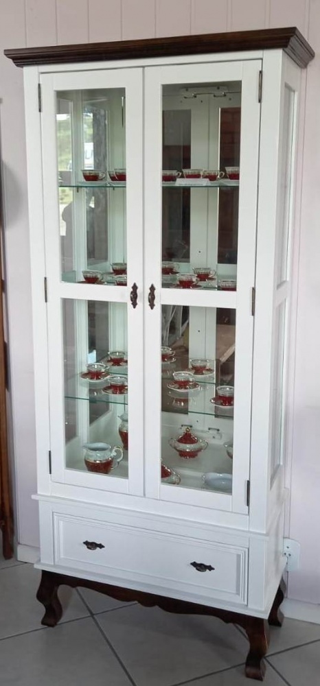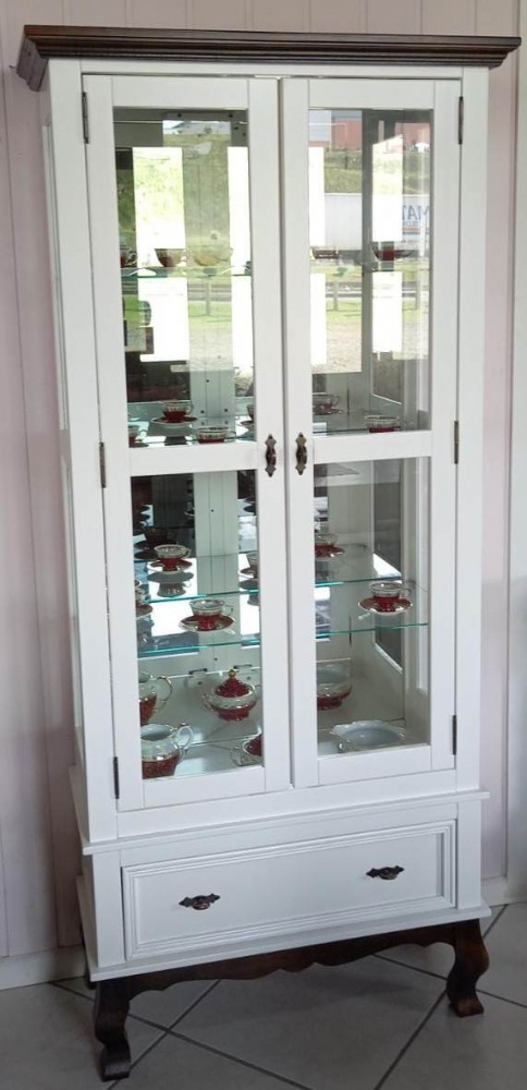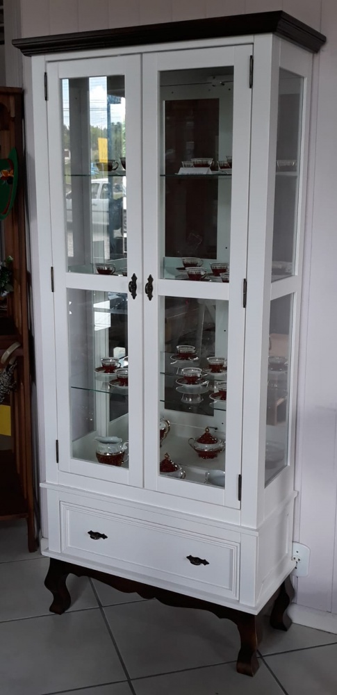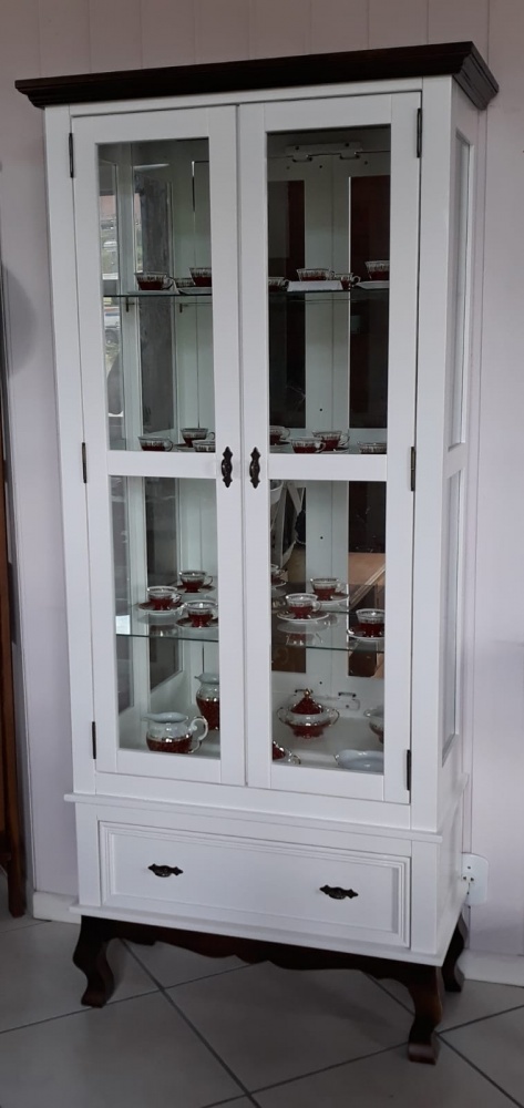3118 - Cristaleira Charlotte Alta 02 portas Branca Laqueada com Castanho Envelhecido