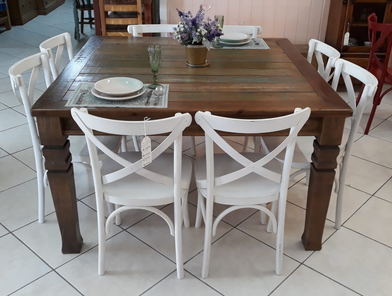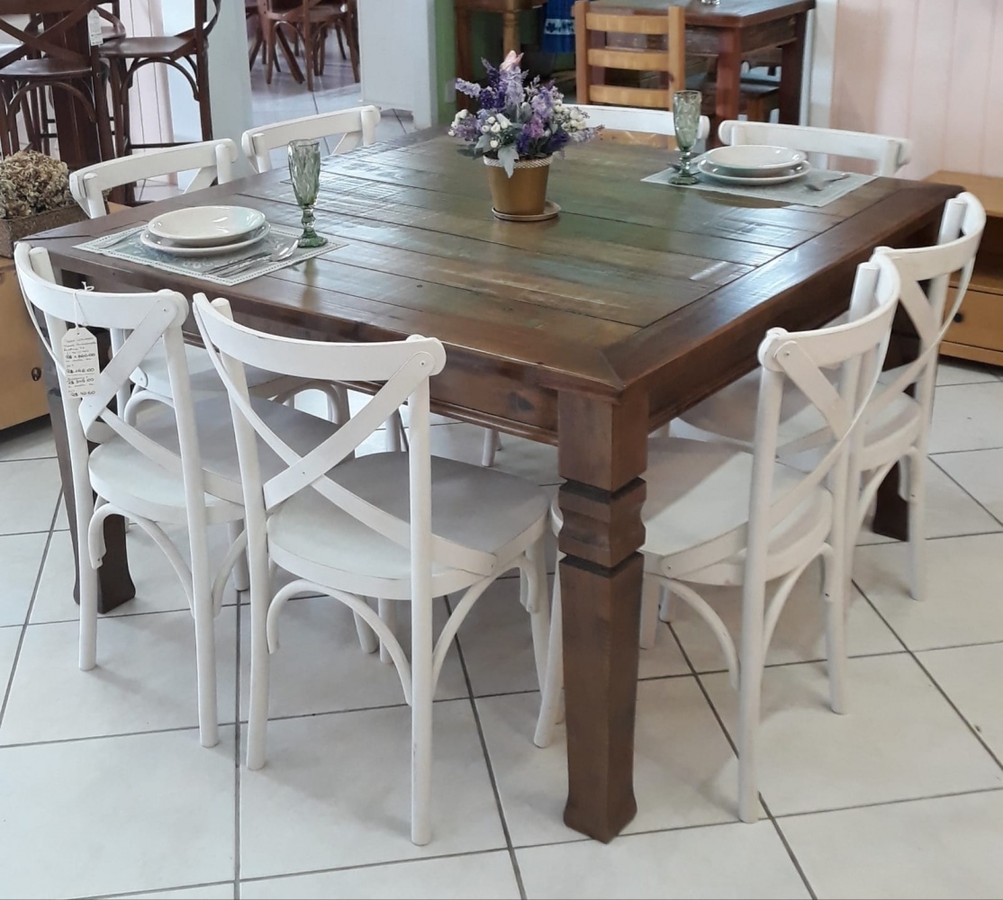 | Material da Mesa | Madeira maciça de reflorestamento (imitando madeira de demolição) |