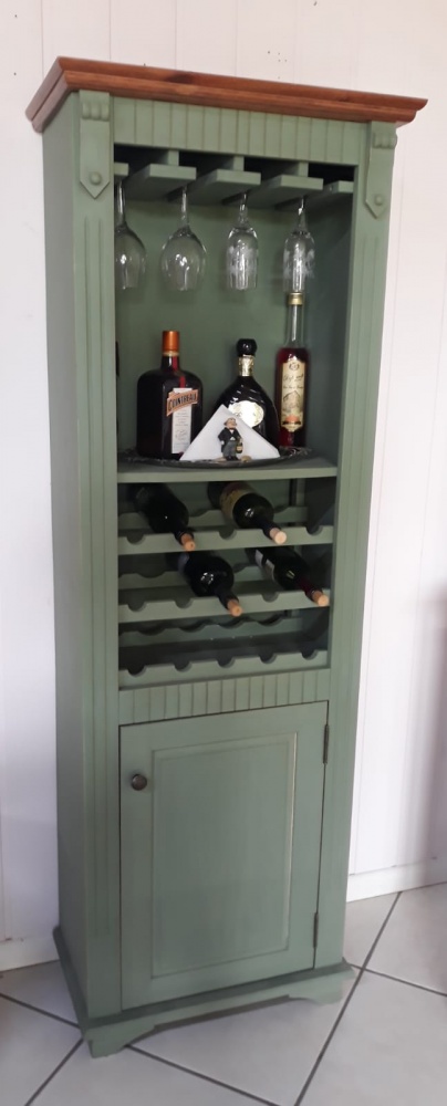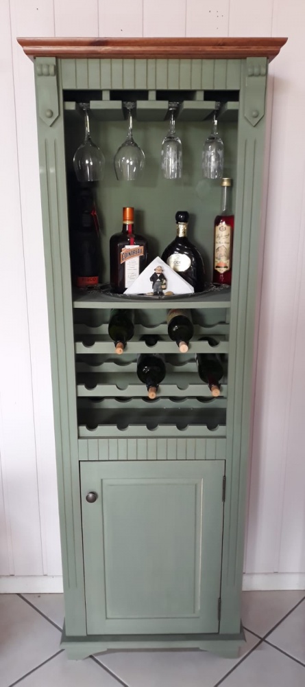 3124 - Adega com porta e porta Taças Verde Musgo Envelhecido com teto Castanho
