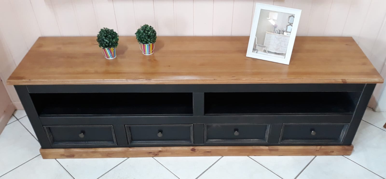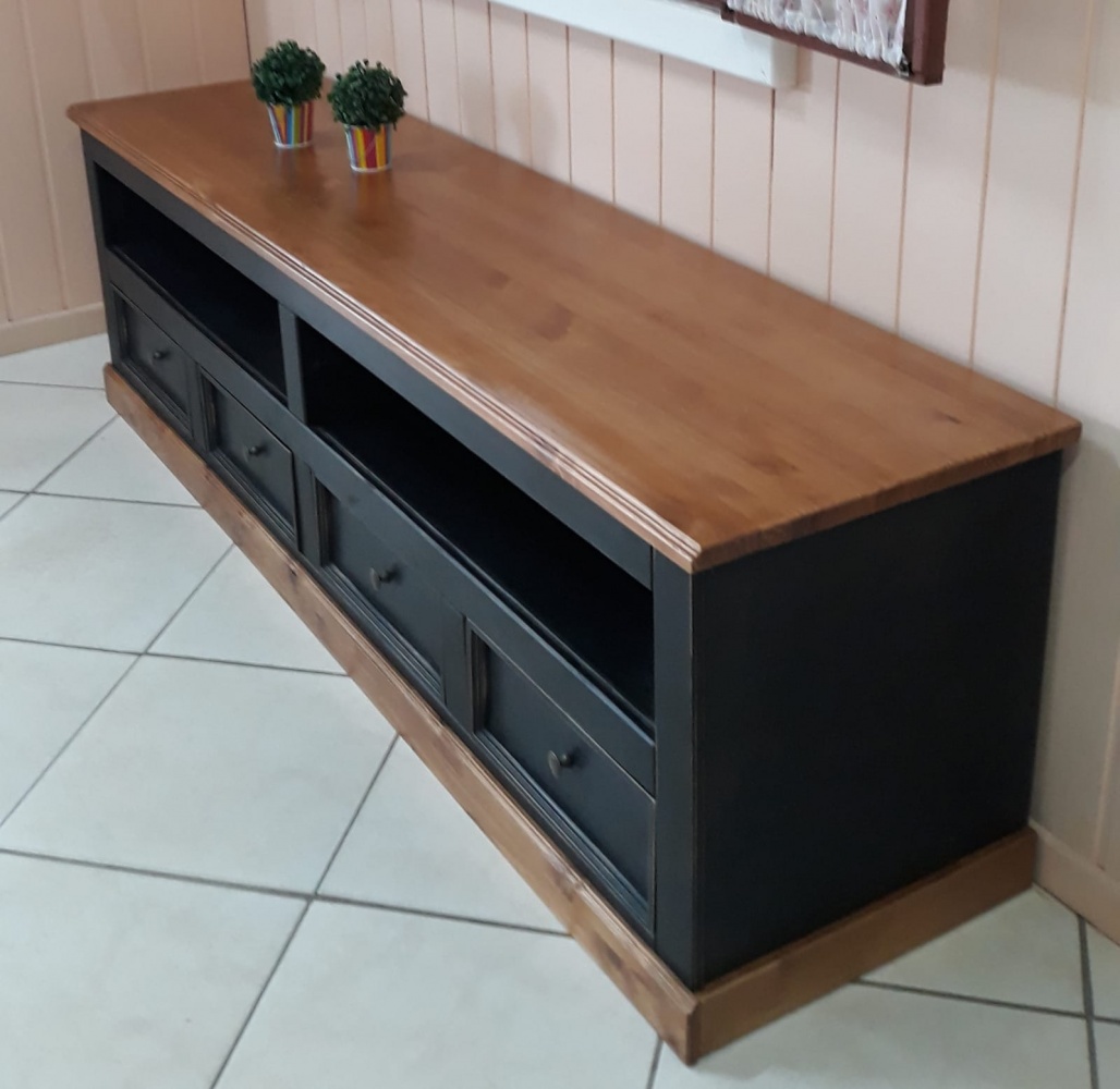3145 - Rack 04 gavetas Preto envelhecido com Castanho