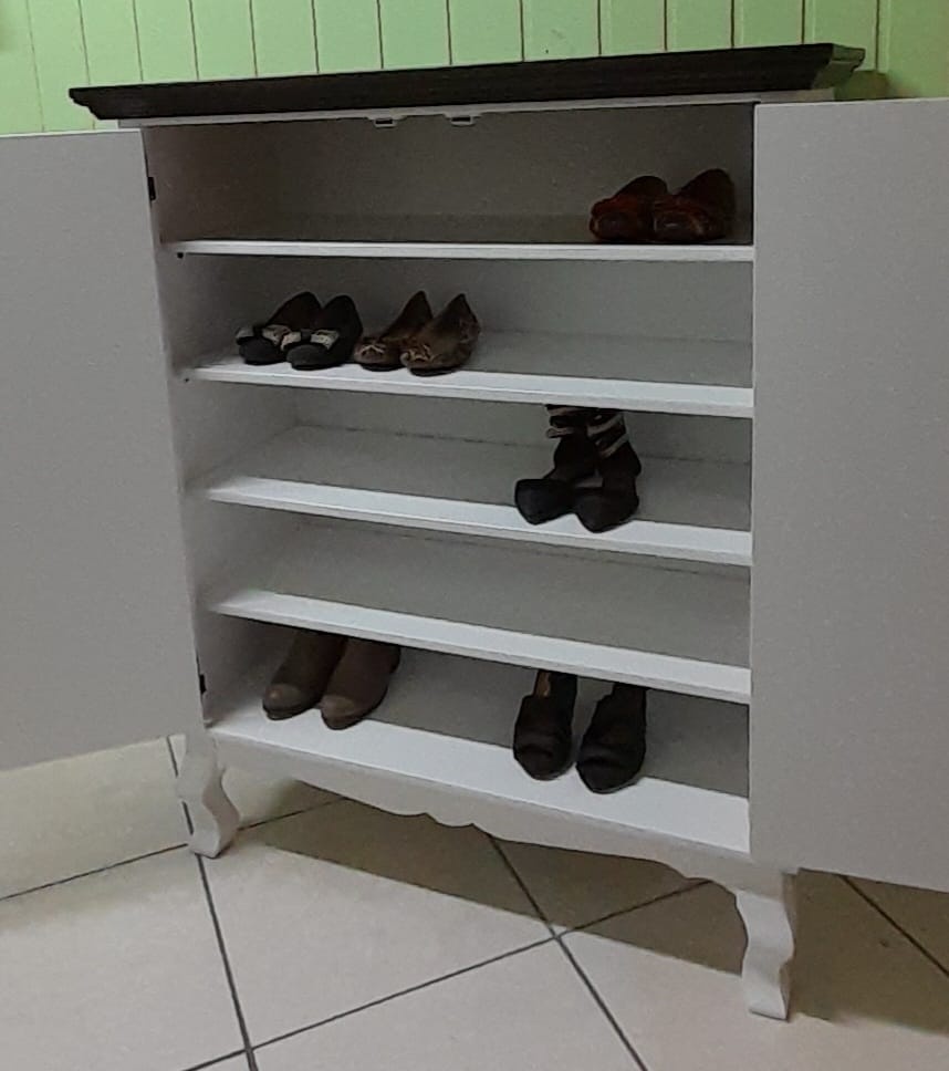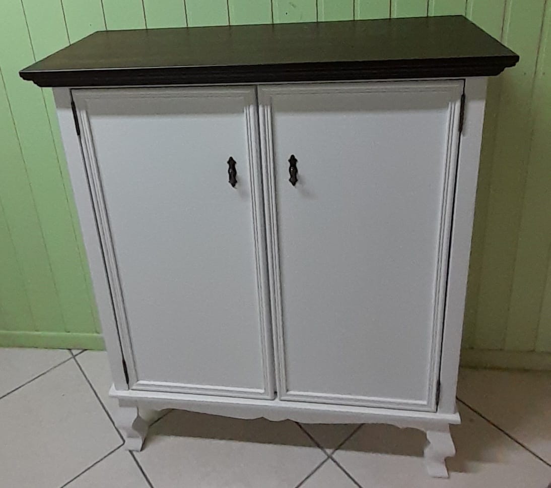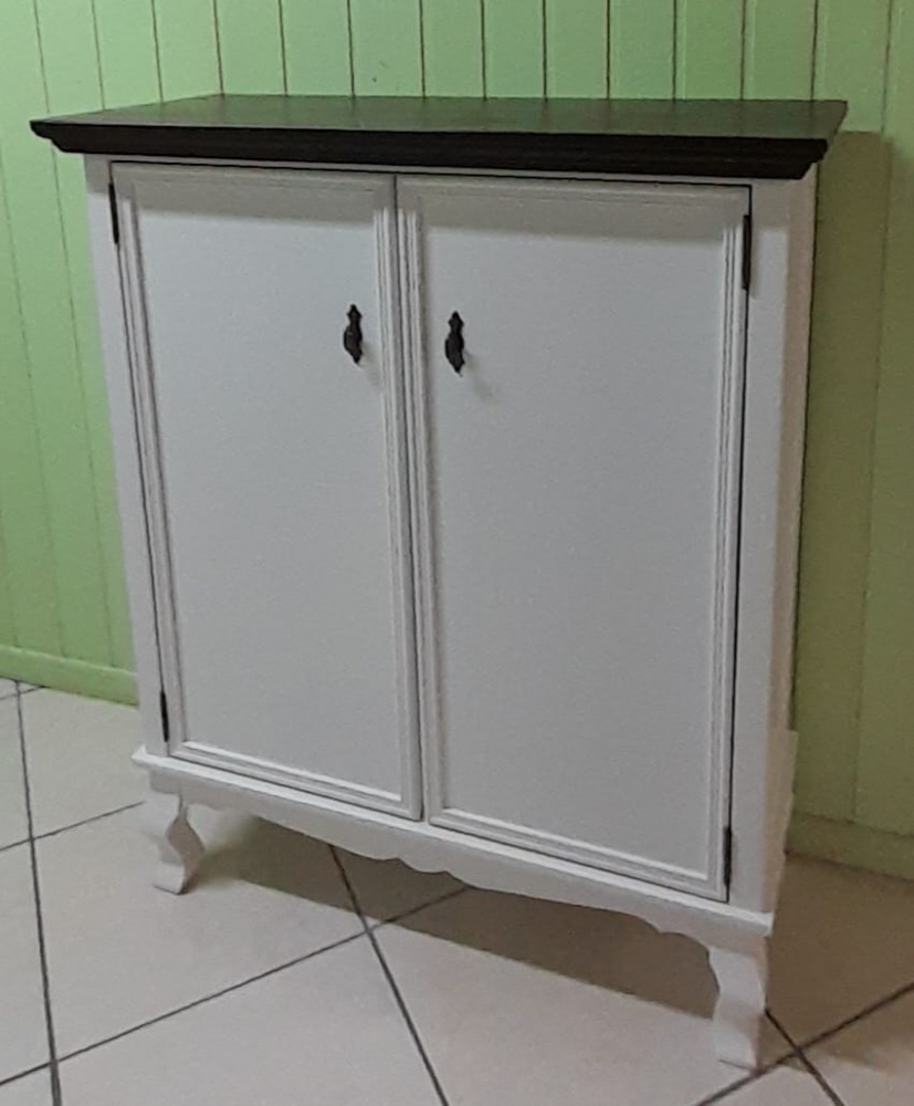 3201 - Sapateira Luis Felipe Baixa 02 Portas Branco Laqueado com Castanho Envelhecido